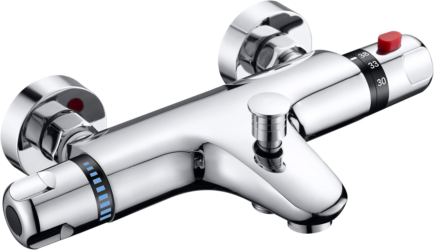 - Materiale e tecnologia premium: il rubinetto termostatico da parete è realizzato in ottone massiccio. La superficie cromata lucida è resistente alla corrosione, antiruggine, durevole e facile da pulire. Miscelatore vasca da bagno con 2 uscite: passare dal rubinetto della vasca alla doccetta tirando un deviatore verso l'alto o premendo verso il basso.