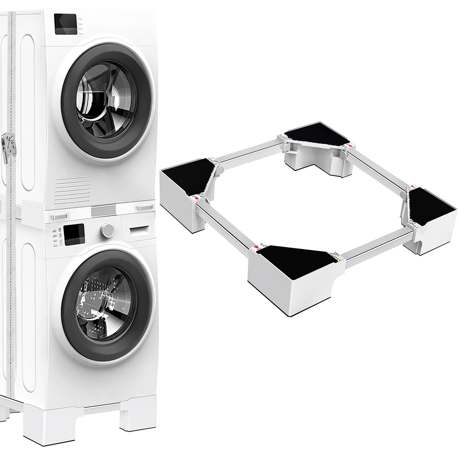 - NIUXX Base Universale per Lavatrici: 4 Piedini Rialzo Rinforzati supporti extraresistenti per pulire sotto gli elettrodomestici. Gommine antiscivolo prevengono spostamenti. Portata 400 kg per carichi pesanti elettrodomestici