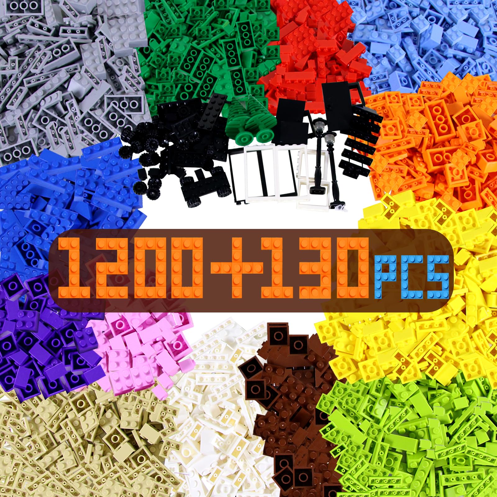 - Varietà di accessori: Il set include accessori come porte, finestre, alberi, lampioni, ruote, occhi. Si può usare come si vuole, si possono costruire case, automobili, animali, ecc