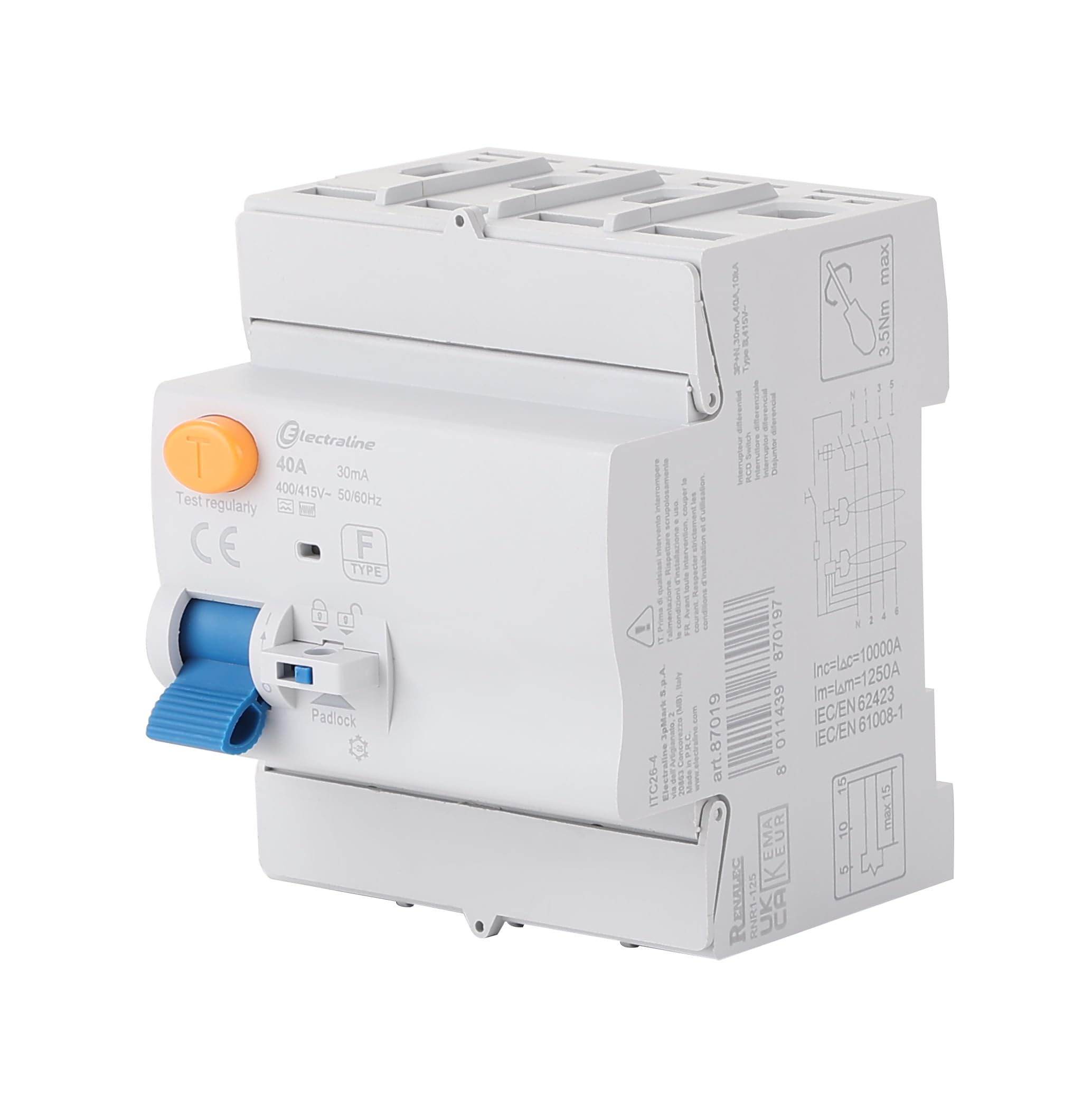 Electraline 87019 Interruttore Differenziale 40A Trifase