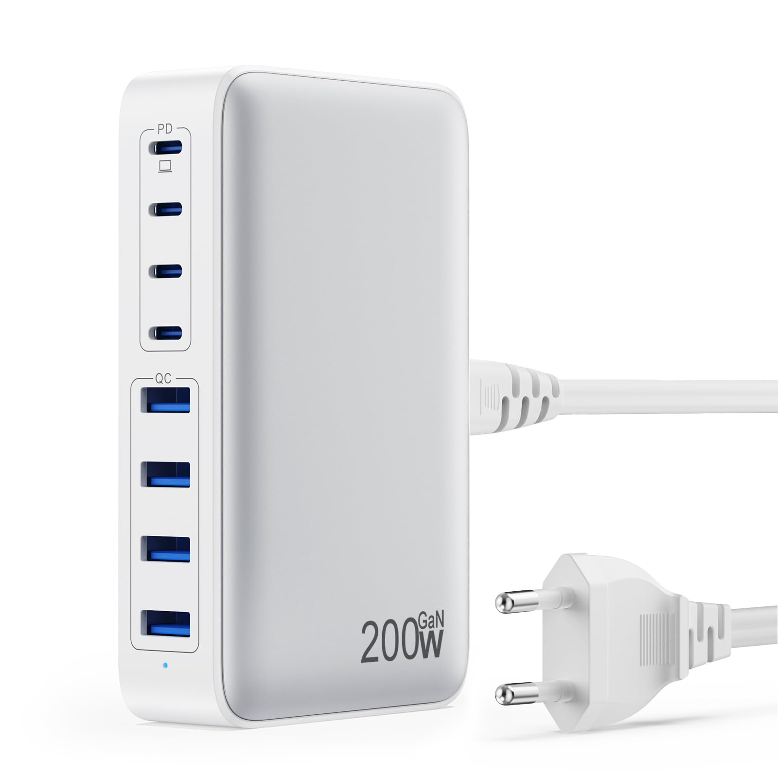 Caricatore USB C Multiplo GaN III 200W 8 Porte, Bianco