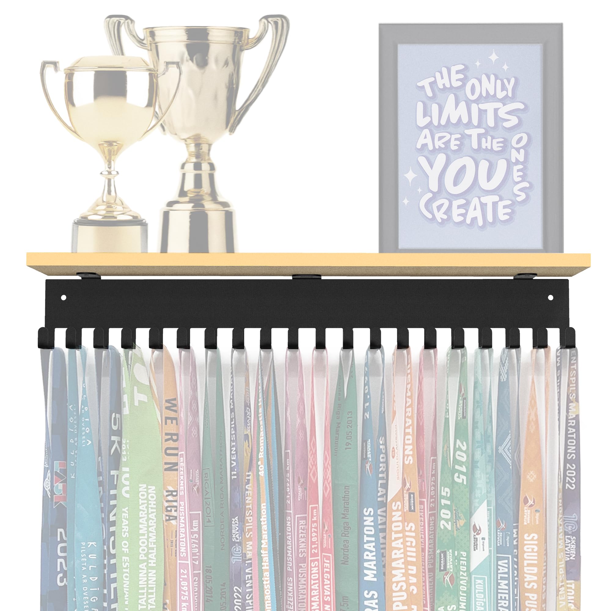 - Contiene fino a 48 medaglie: il porta medaglie da parete ha 3 barre per le tue medaglie e può contenere fino a 48 medaglie a seconda della larghezza del nastro