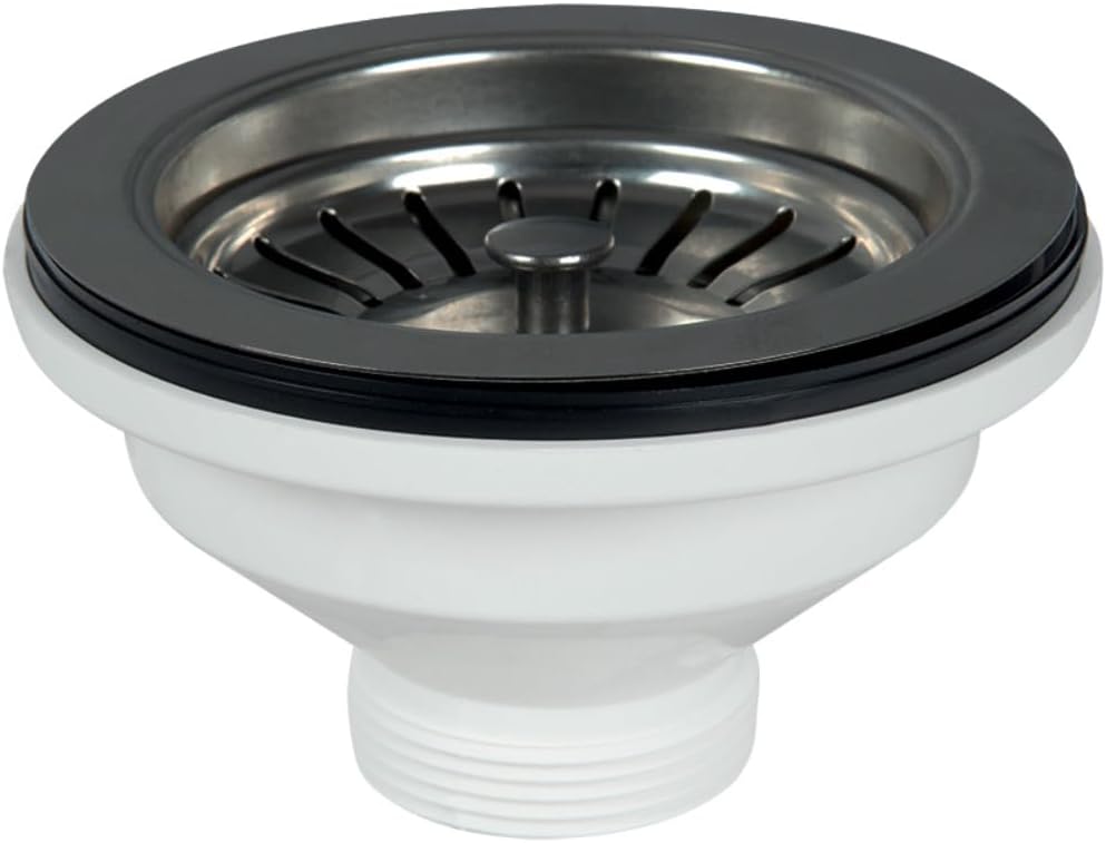 - La connessione standard per sifone facilita il montaggio. La piletta filtra efficacemente i rifiuti, permettendo all'acqua di scorrere senza ostacoli. È adatta per lavelli cucina con foro di diametro Ø 90 mm e il tappo a cestello è facilmente estraibile.