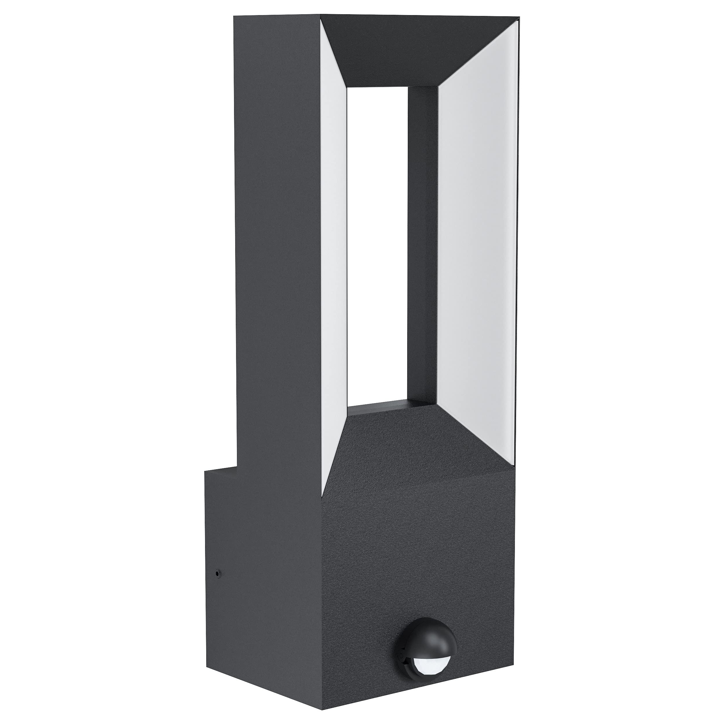 Eglo Led lampada da parete per esterni Riforano, lampada da esterno con rilevatore di movimento, sensore crepuscolare, fusione di alluminio in nero e plastica in bianco, bianco caldo, IP44