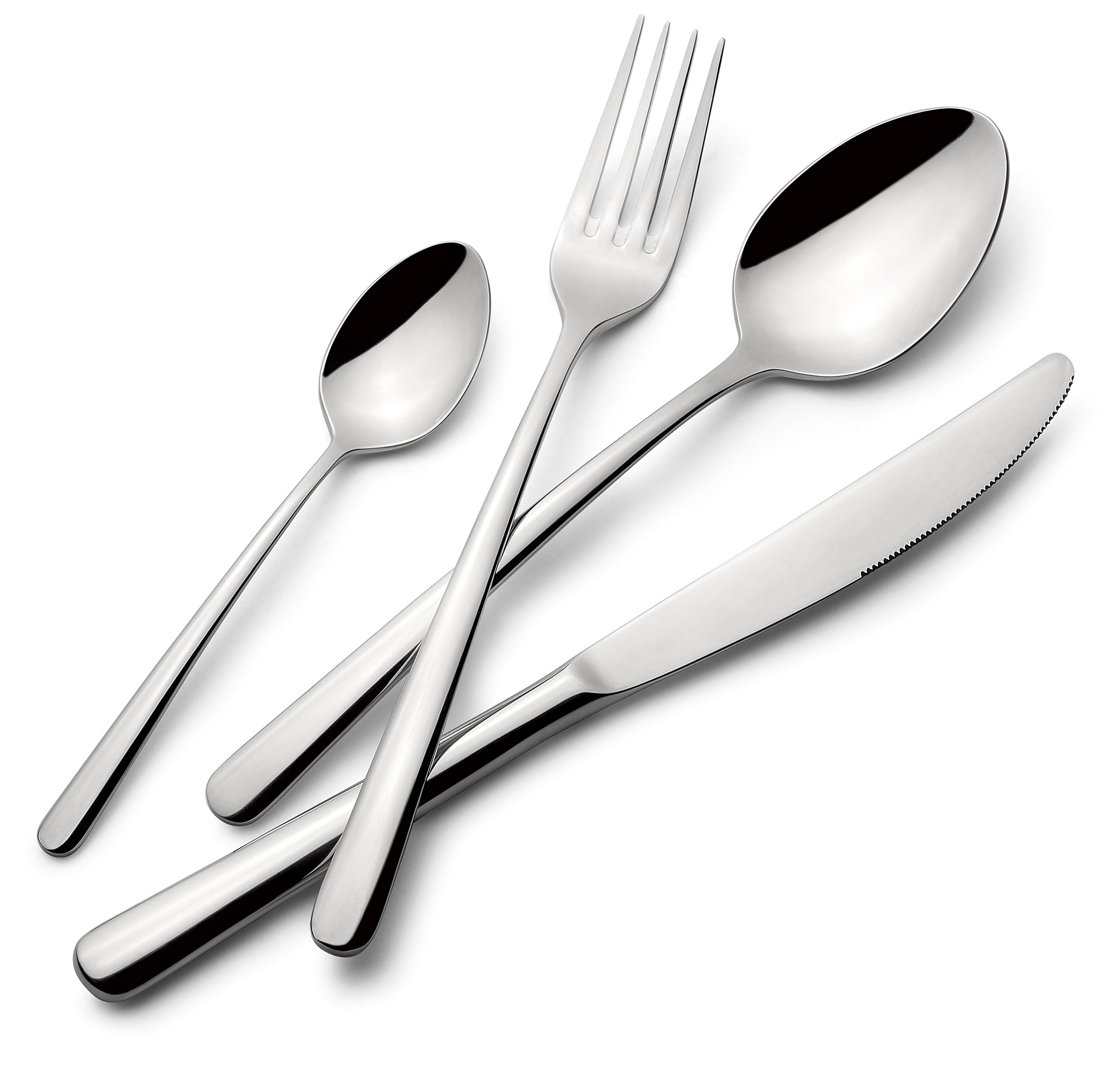 6 Forchette, 6 Coltelli, 6 Cucchiai, 6 Cucchiaini · Finitura lucida a specchio