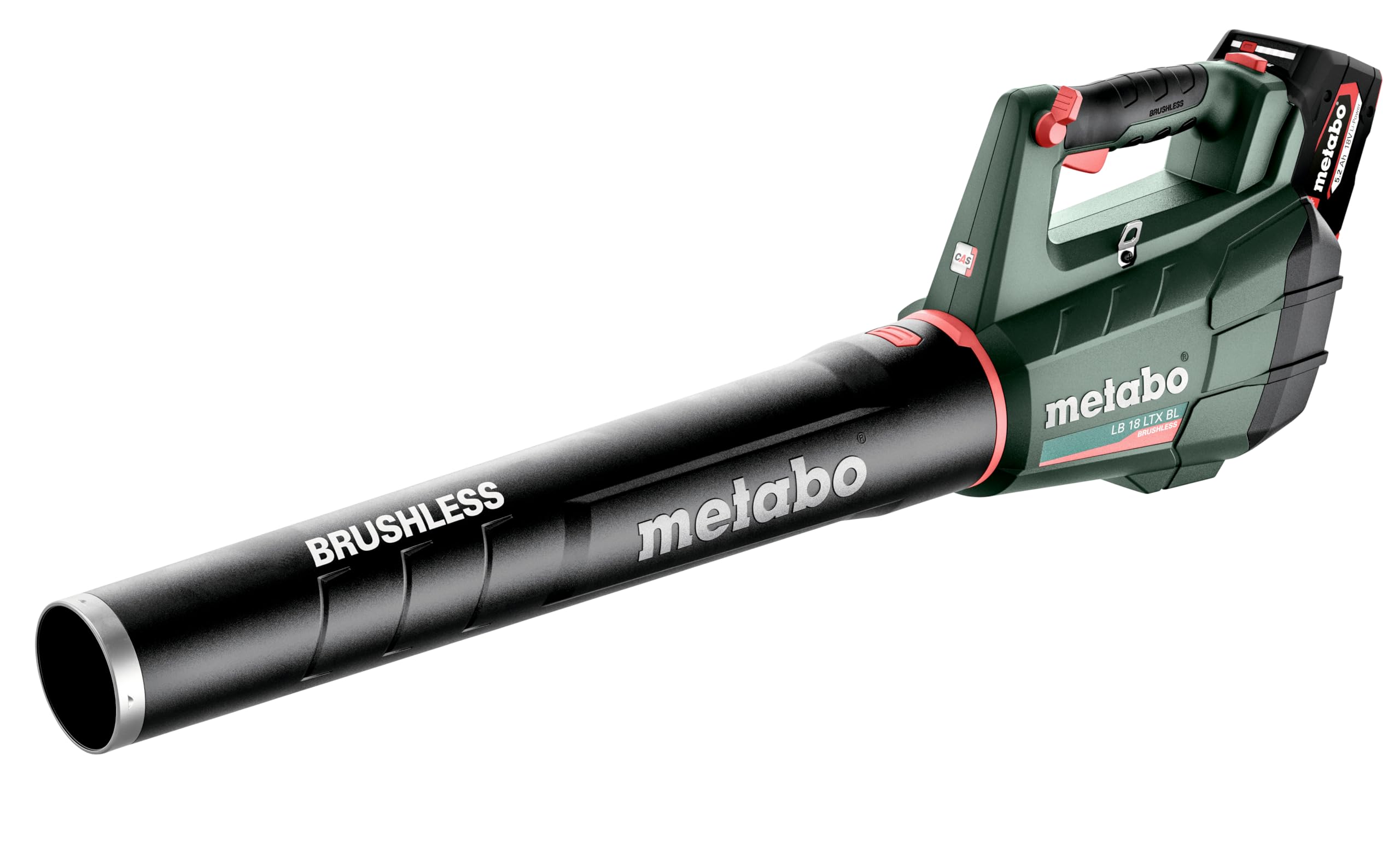 - La confezione include il soffiatore a batteria Metabo LB 18 LTX BL (601607650), un tubo di soffiaggio rimovibile con anello di protezione in metallo, una tracolla, due batterie Li-Power (18 V/5,2 Ah) e il caricatore ASC 55 "AIR COOLED".