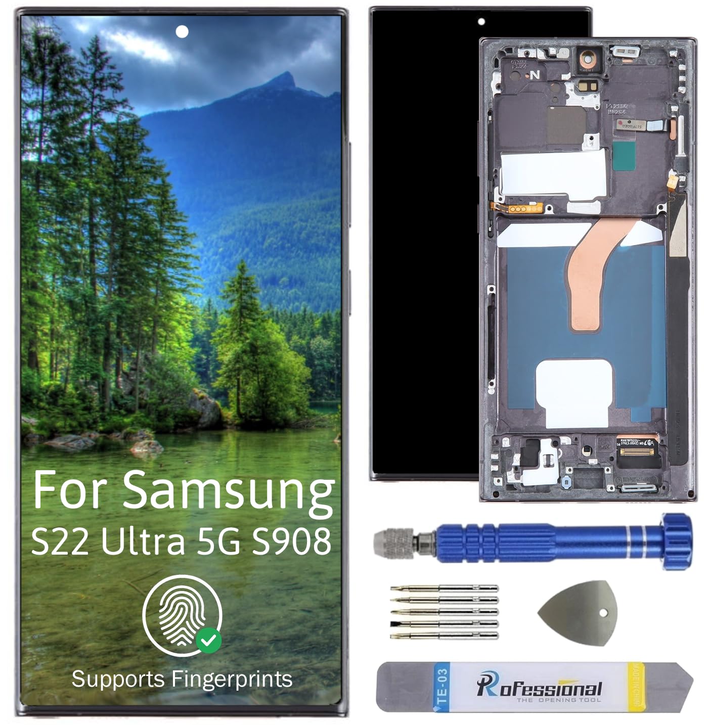 - Contenuto della confezione: 1 display per Samsung S22 Ultra 5G S908 con telaio, 1 strumento di alta qualità