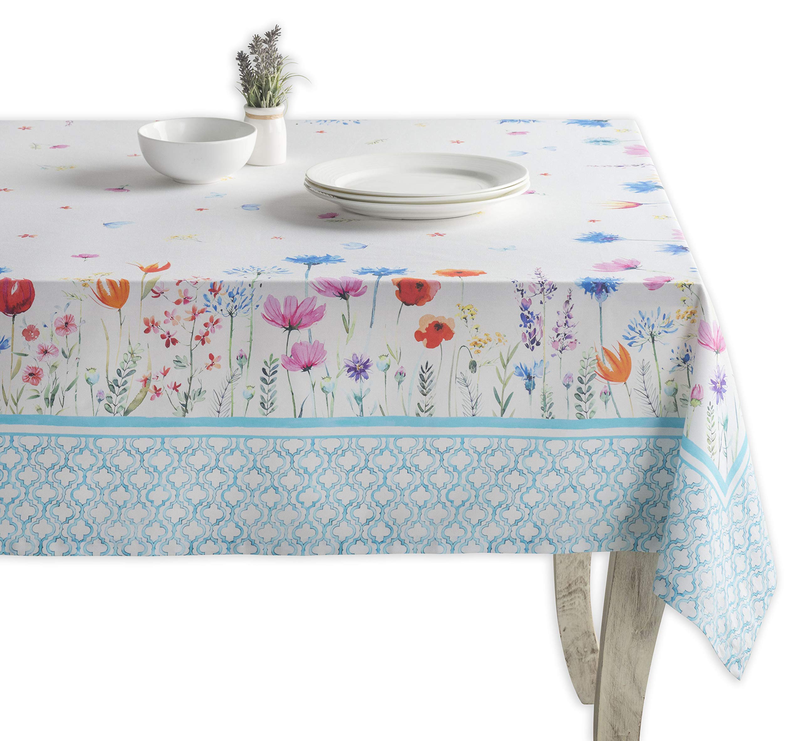 - La confezione include una tovaglia rettangolare da 160 x 220 cm, realizzata in 100% cotone, con un vivace motivo floreale che evoca i raggi del sole mattutino, perfetta per illuminare cene di famiglia e occasioni speciali. I prodotti sono ideati in Europa e fabbricati in India.