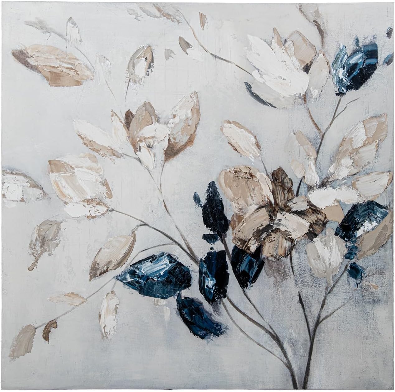 DRW Set 2 Quadri Tela Stampa Fogli e Cornice PS 100x100 cm
