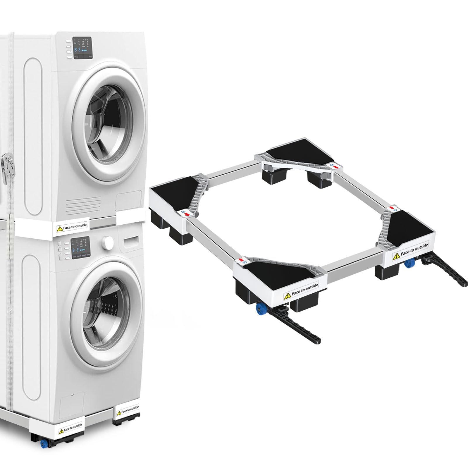 - La base per lavatrice è costruita con acciaio inossidabile e plastica di alta qualità, garantendo resistenza alla ruggine, durabilità e una notevole capacità di carico fino a 400 kg per mobili pesanti.