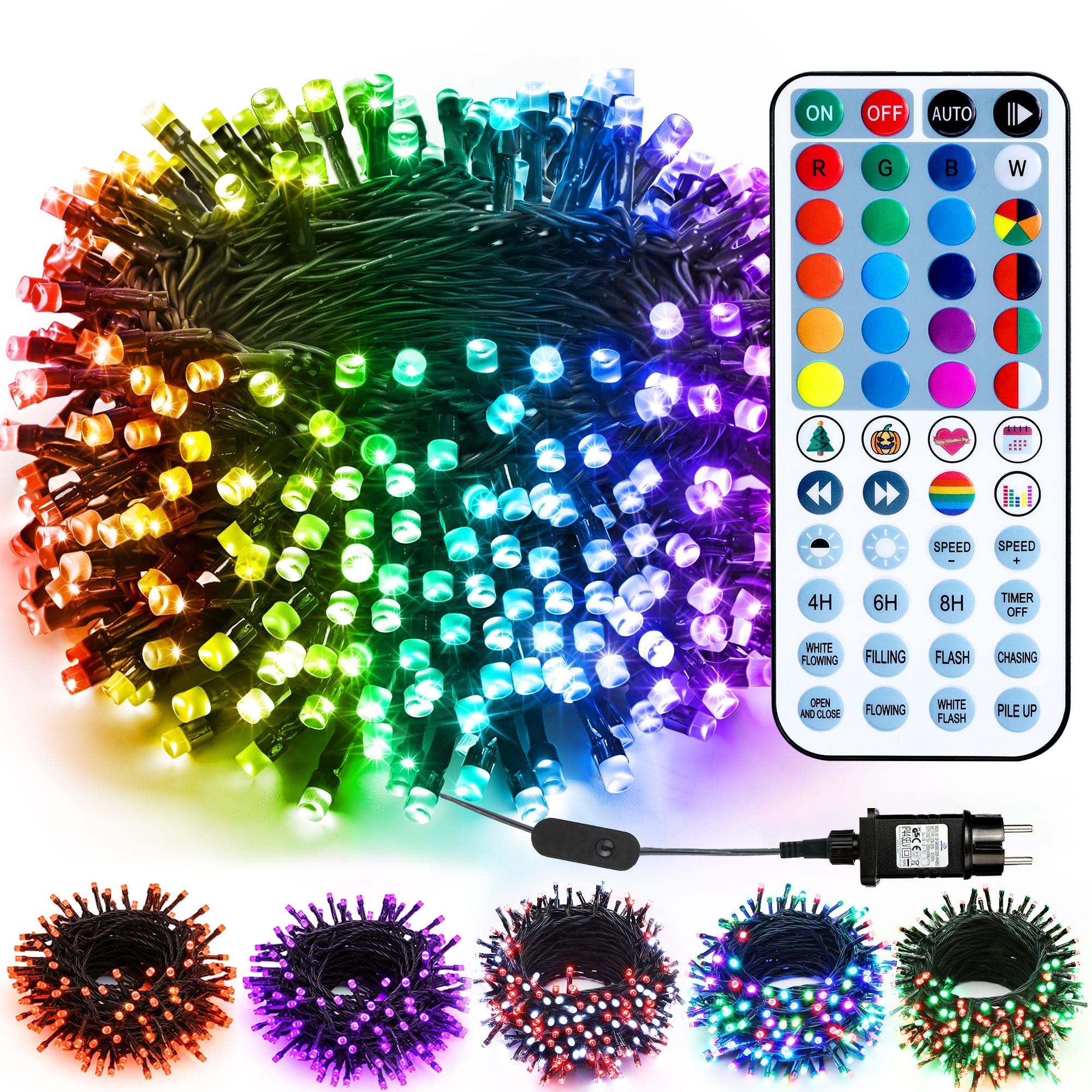 - Led Stringa Luci con Spina & Telecomando: queste luci di Natale per interni sono facili da trasportare, plug and play. Bassa tensione e basso calore, sicuro da usare. 2 metodi di controllo flessibili: pulsante interruttore sull'adattatore e telecomando. Con telecomando a 48 tasti, aggiungendo "Auto", Pausa/Riproduci e "Avanti"/"Indietro", puoi passare da una modalità all'altra 121 premendo avanti o indietro, inoltre, premendo il pulsante "Auto" verranno riprodotti automaticamente 498 modello.