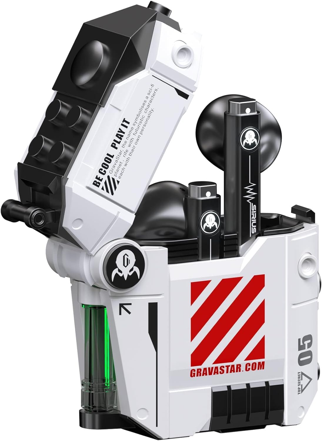 - Personalizza il tuo look con le custodie di ricarica intercambiabili di Sirius P5, disponibili in 5 design cyberpunk industriali o in un pacchetto combinato da 3 stili, per abbinarle al tuo umore o alla tua musica.