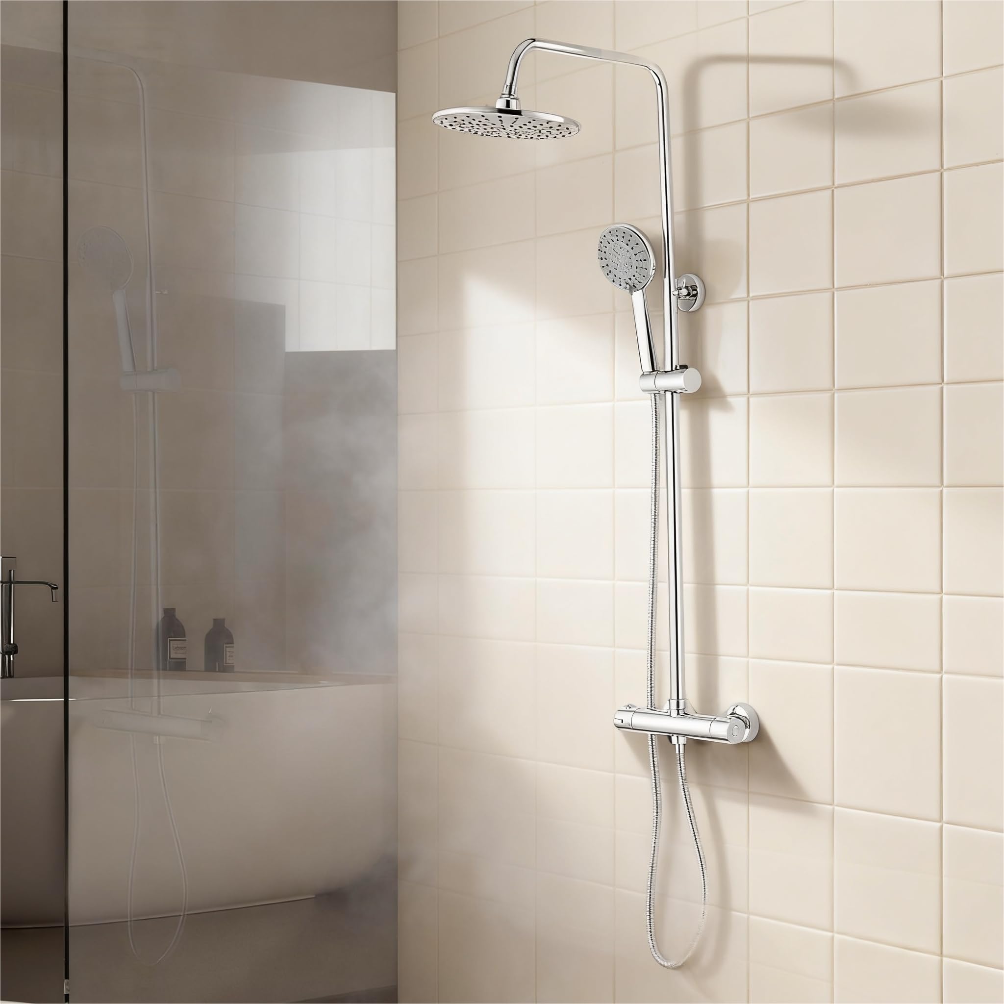 Colonna Doccia con Miscelatore Termostatico, Argento Rotondo