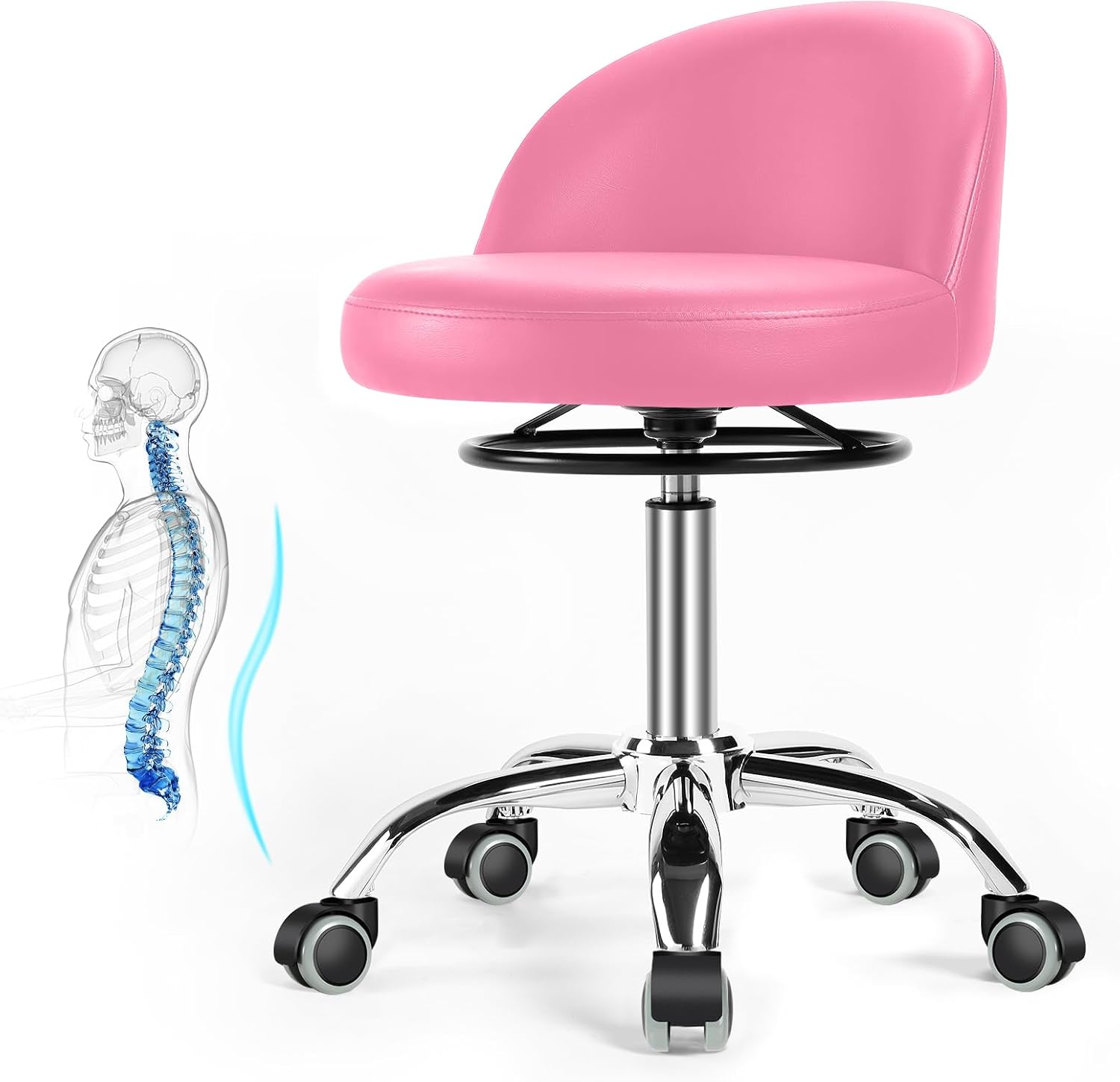 - Questo sgabello girevole è progettato per il comfort, con imbottitura spessa in spugna e rivestimento in pelle PU resistente e facile da pulire, mantenendo morbidezza ed elasticità nel tempo. Il supporto lombare integrato contribuisce ad alleviare il dolore alla vita, promuovendo una postura sana durante lunghe ore di lavoro.