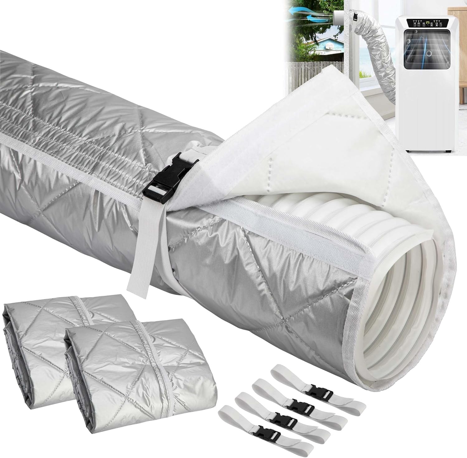 - Materiale di alta qualità: la copertura per tubo dell'aria condizionata realizzata in materiale trapuntato, che non solo fornisce un eccellente isolamento termico, ma può anche ridurre al minimo la perdita di calore. È leggero e facile da usare e non appesantisce troppo il tubo