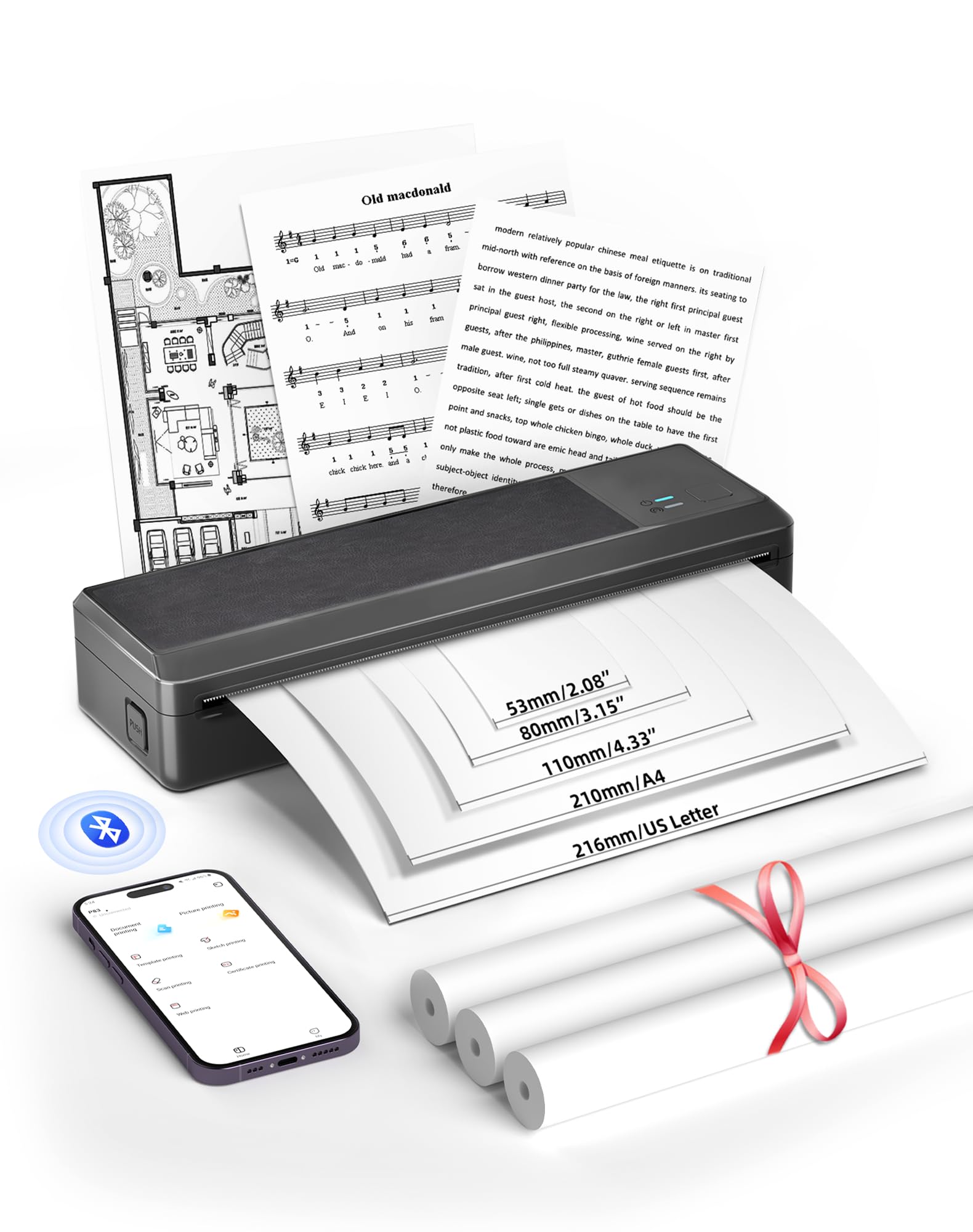 - Multifunzione e Versatile: Supporta formati A4, B5, A5, Letter e 110/80/53 mm (rotoli e carta pieghevole). Ideale per fatture, foto, modelli per tatuaggi, progetti fai-da-te e altro! Include 3 rotoli di carta termica.
