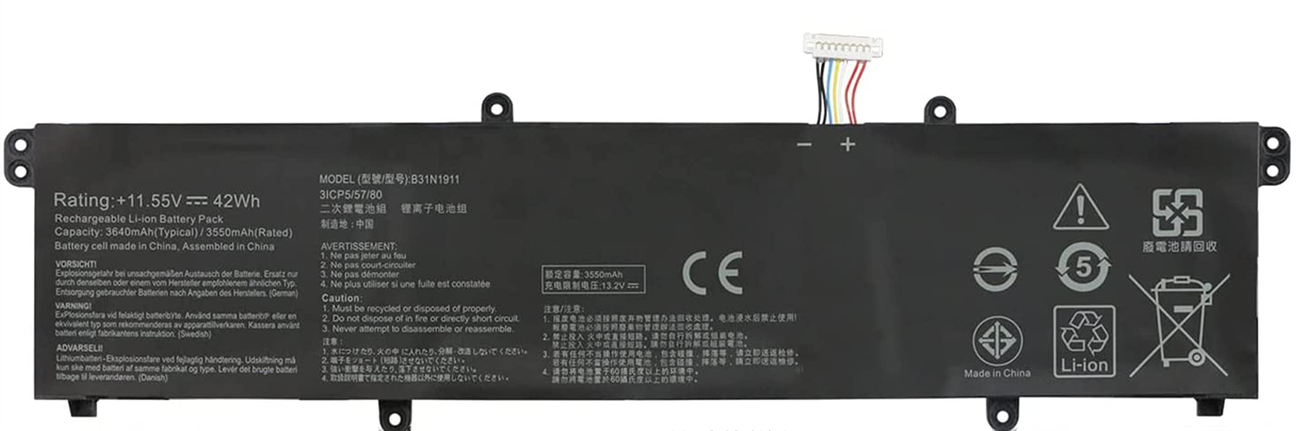 - 【Specifications】Battery type : Li-ion ;Voltage: 11.55V. Capacity:42Wh. Battery life: Up to 500 recharge cycles over the life of the battery.