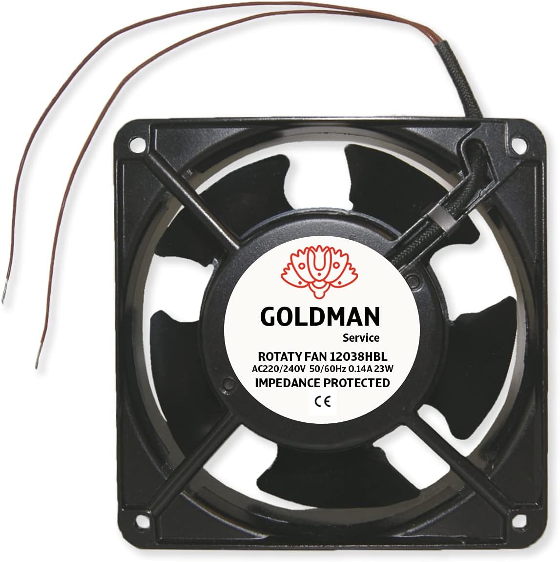 - Questa ventola assiale ad alta temperatura, con dimensioni di 120 x 120 x 38 mm e alimentazione a 230 V, 23W, è progettata per cassette inseribili in camini a legna, carbone, ossa, stufe a pellet senza fumo, gas, ecc., offrendo risparmio energetico e silenziosità.