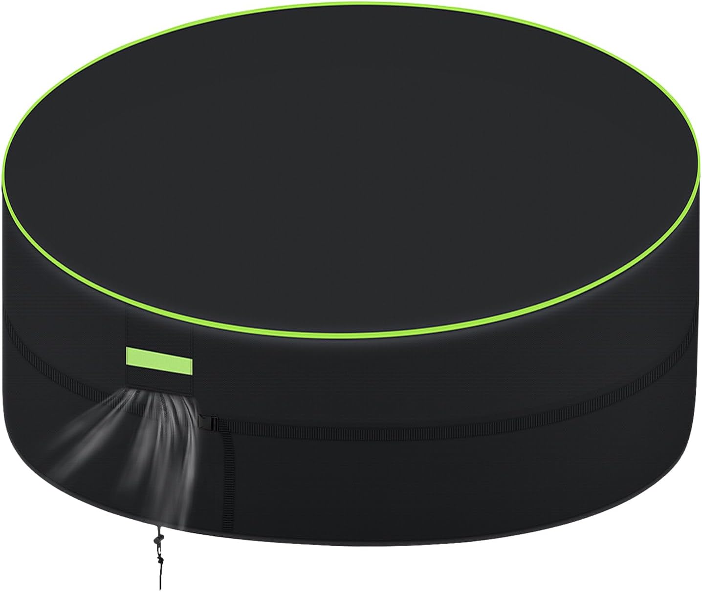 - Per assicurare stabilità e una vestibilità ottimale, la copertura rotonda è dotata di cinghie di chiusura e due cordoncini sul bordo, che permettono di regolare la tenuta e impedire lo scivolamento anche in condizioni ventose.