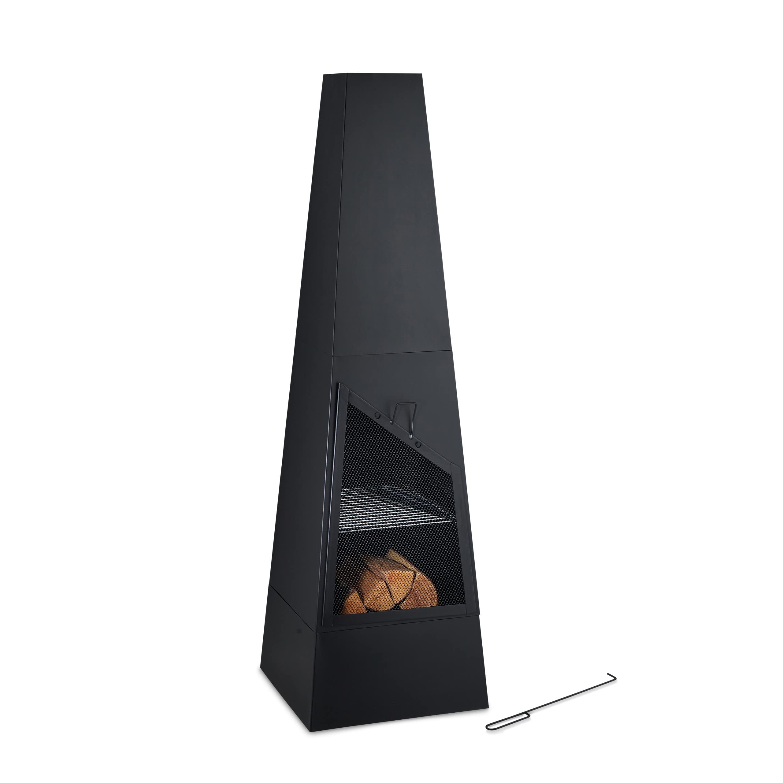 - Stabile: camino da giardino e veranda in acciaio nero - dimensioni totali HxLxP 149 x 44,5 x 44,5 cm