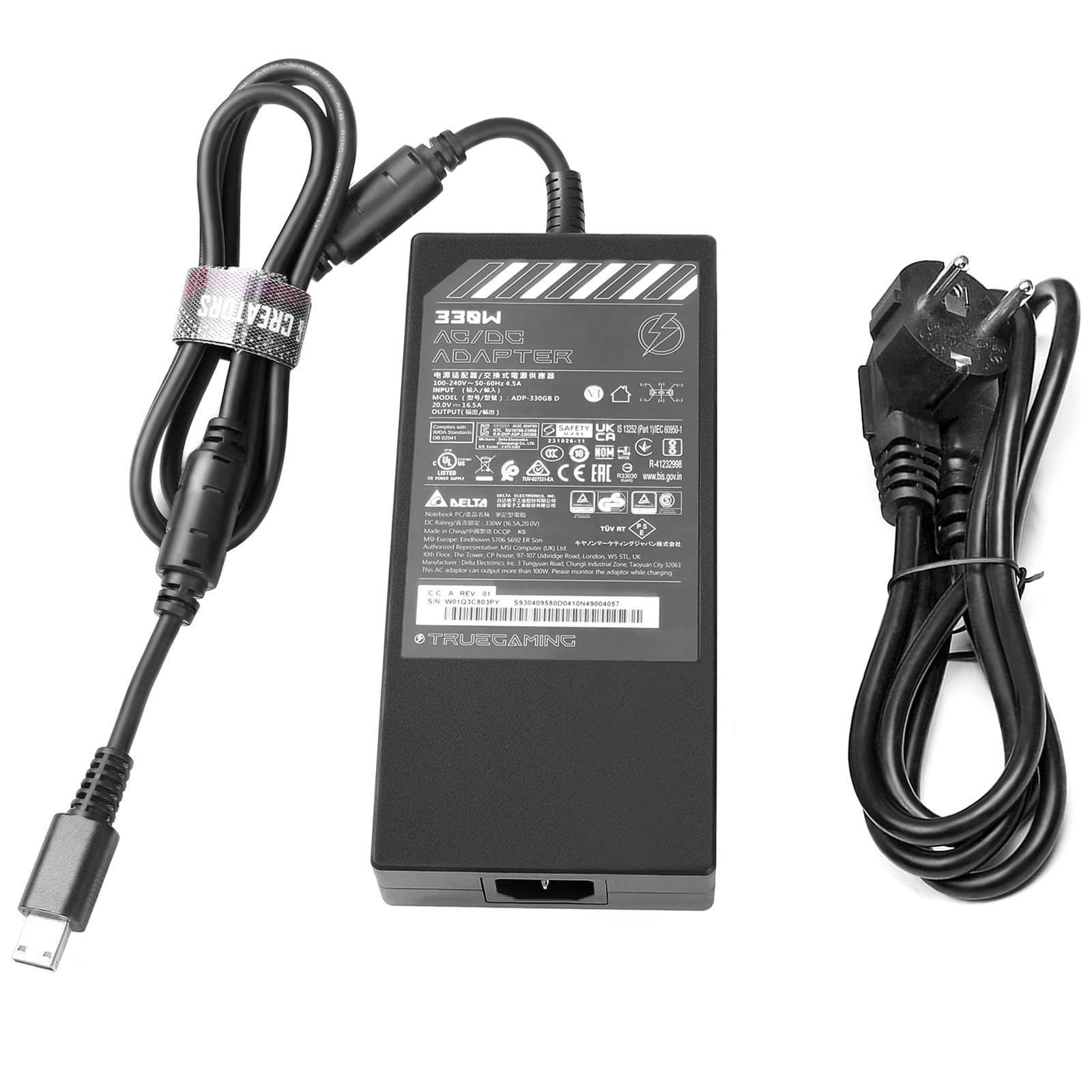 - Specifiche di ingresso: 100-240V ~ 4,4A 50-60Hz. Uscita: 19,5 V 16,9 A / 16,92 A 330 W, compatibile con caricabatterie MSI da 330W e 280W.