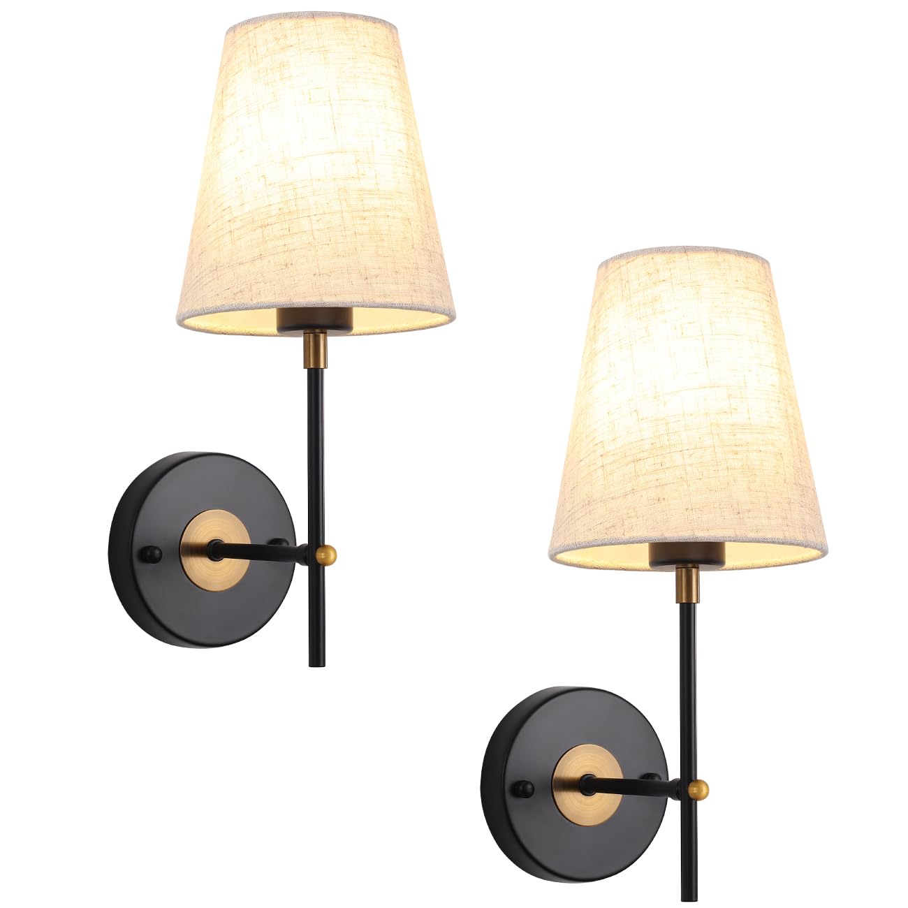 - Questo set include due applique da parete con un design che combina finiture nere e oro, un portalampada E27 a braccio lineare e un paralume in tessuto di lino beige, creando un equilibrio tra estetica industriale moderna e fascino vintage; la verniciatura antiruggine assicura una lunga durata.