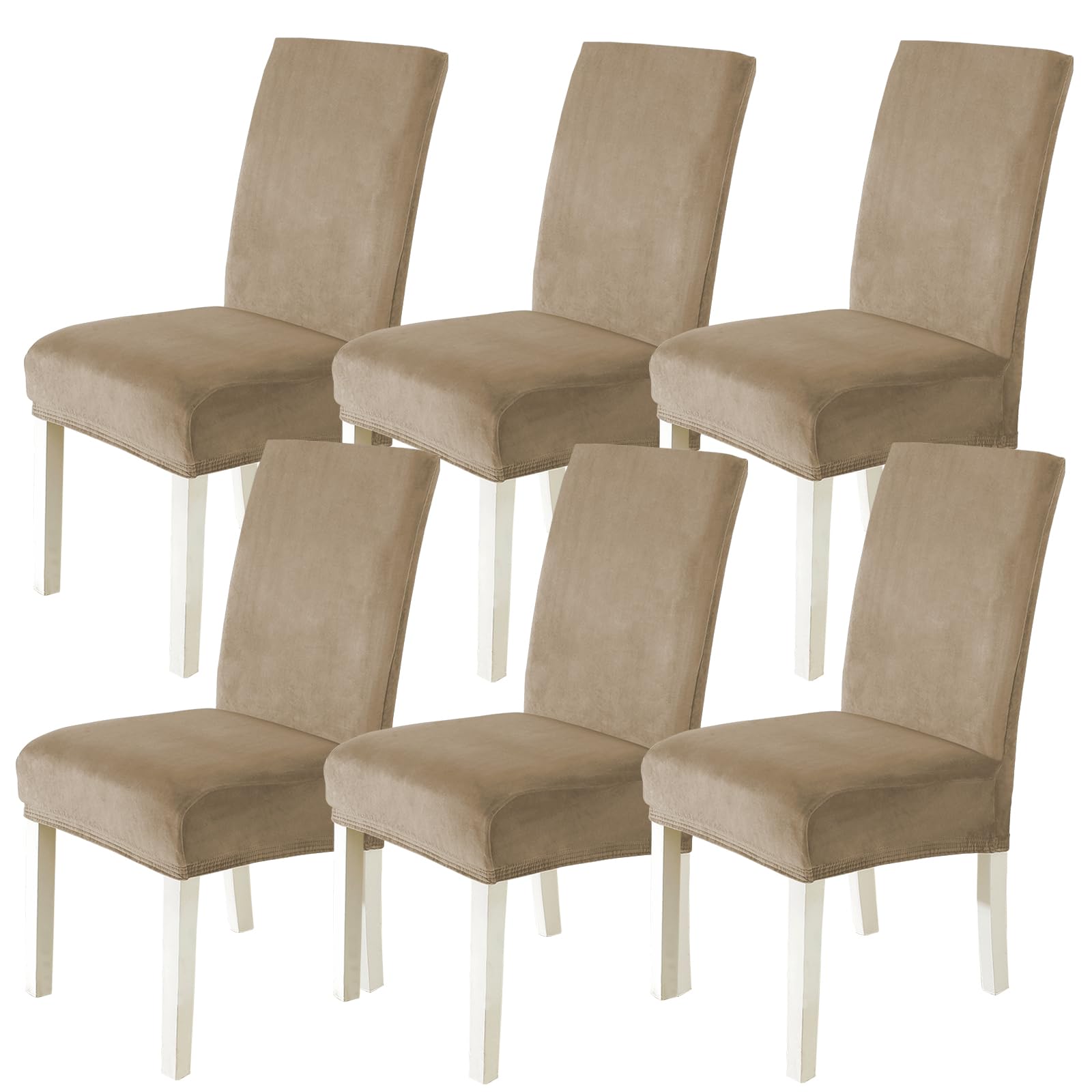 Velluto Coprisedie con Schienale 6 Pezzi, Cammello