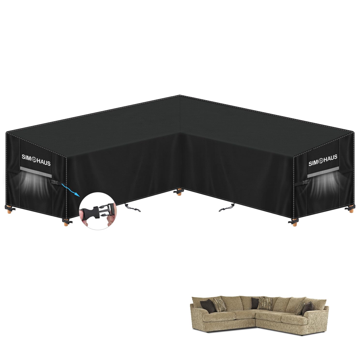 - Le dimensioni sono 285 cm (lunghezza schienale) x 285 cm (lunghezza schienale) x 99 cm (larghezza bracciolo anteriore-schienale) x 80 cm (altezza schienale) e 60 cm (altezza bracciolo anteriore), adatta per la maggior parte dei divani angolari a V, divani componibili da esterno e mobili angolari in rattan, mantenendoli asciutti e protetti.