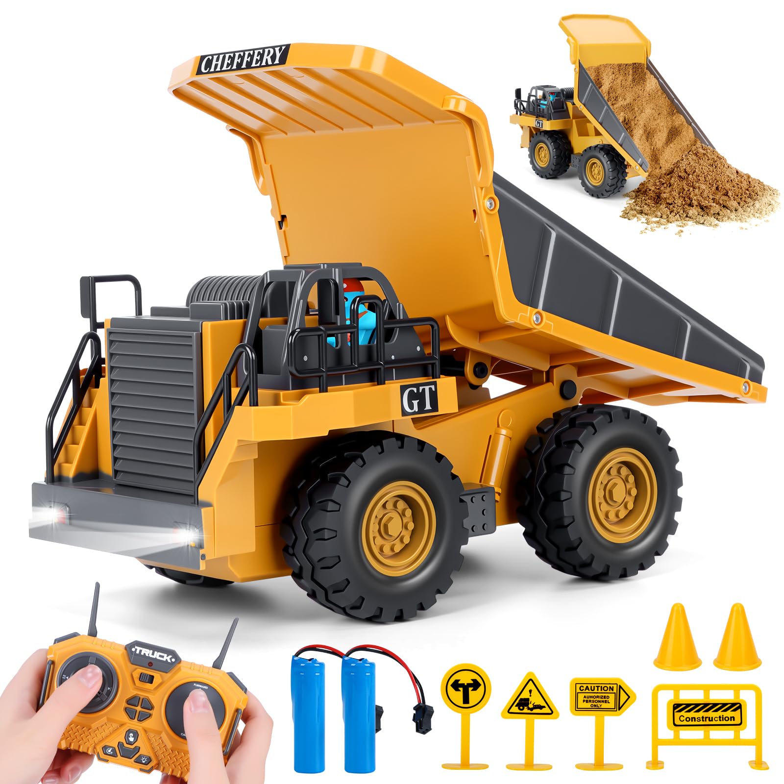 - Questo camion ribaltabile telecomandato è un regalo ideale per compleanni o festività, adatto a bambini dai 3 ai 7 anni. Favorisce lo sviluppo della coordinazione occhio-mano e delle capacità di pensiero, incoraggiando la creatività e la scoperta, e offre l'opportunità a genitori e figli di condividere momenti di gioco preziosi.