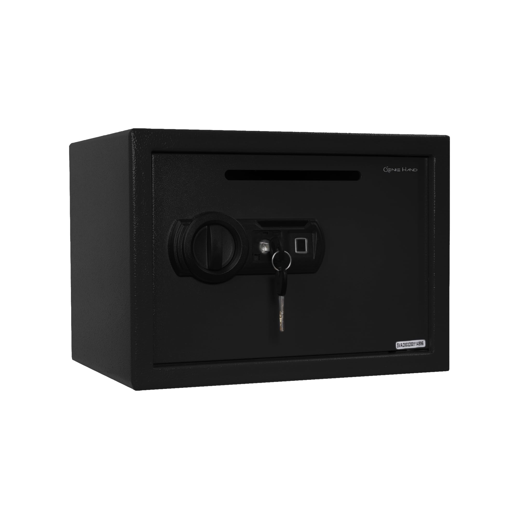 - Cassaforte elettronica in acciaio con fessura di deposito e lettore d'impronta digitale a semiconduttore per un riconoscimento rapido e affidabile, dotata di cerniere a scomparsa resistenti e indicatore di batteria scarica.