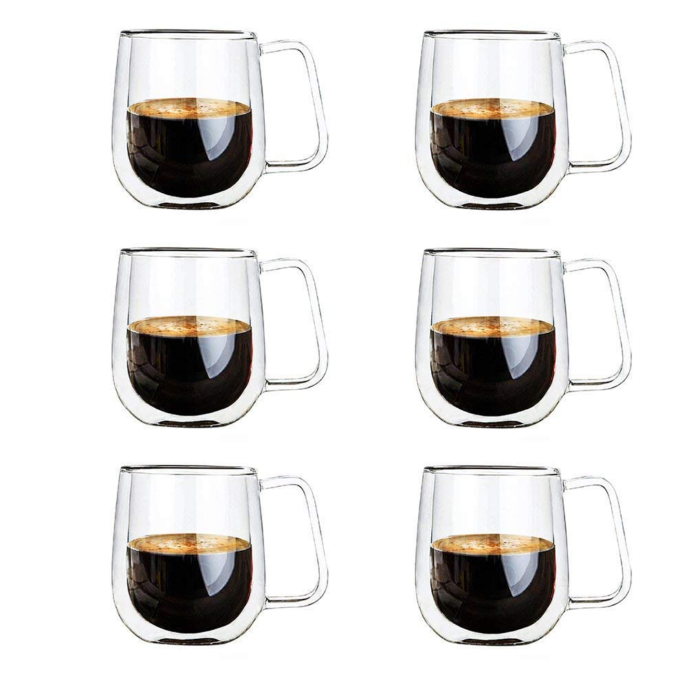 Vicloon Tazza Vetro Doppia Parete 250 ml con Manico, Set 6