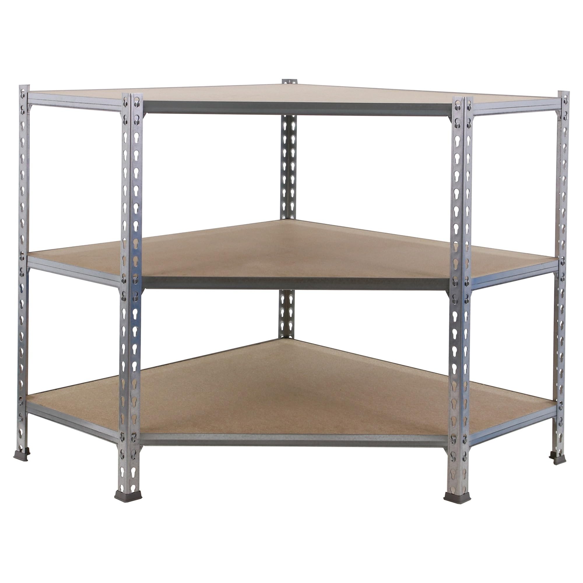- Lo scaffale metallico SimonRack Maderclick Corner è progettato per gli angoli, con un sistema di montaggio rapido e senza viti che permette di creare facilmente il proprio spazio; i ripiani in legno offrono un'estetica migliorata e possono essere montati a diverse altezze, garantendo stabilità senza necessità di fissaggio a muro e un accesso libero a tutti i ripiani, ideale per uso domestico e professionale in garage, officine, negozi o magazzini.