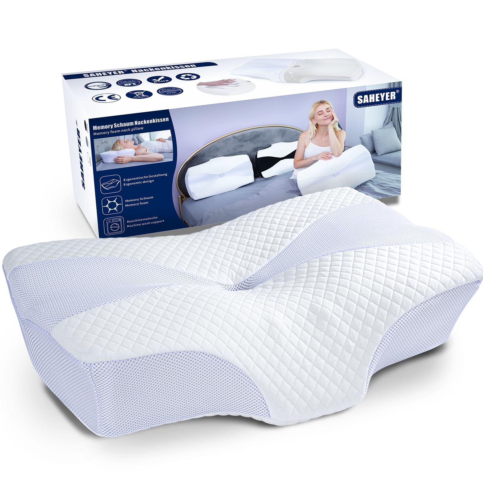- ✅【Fodera traspirante e rispettosa della pelle】La federa esterna del cuscino cervicale SAHEYER è realizzata in tessuto ultra-confortevole e traspirante e con lati in rete per mantenere la sensazione di freschezza e benessere. Lo strato interno traspirante prolunga efficacemente la durata del nucleo in memory foam. Il rivestimento del cuscino ortopedico cervicale è sfoderabile e lavabile in lavatrice, in modo da poterlo tenere sempre pulito e profumato.