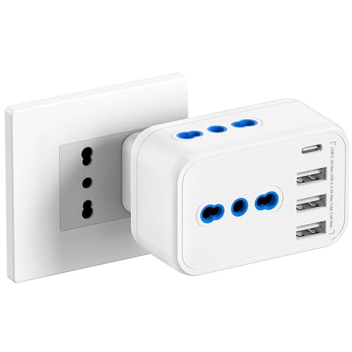 - Questa multipresa salvaspazio 7-in-1 offre 3 prese AC italiane (tipo L a 3 pin), 3 porte USB-A e 1 porta USB-C, consentendo di alimentare e ricaricare simultaneamente fino a 7 dispositivi. Supporta una potenza massima di 2500 Watt (250 Volt, 10 A), rendendola compatibile con la maggior parte degli elettrodomestici e dispositivi elettronici europei.