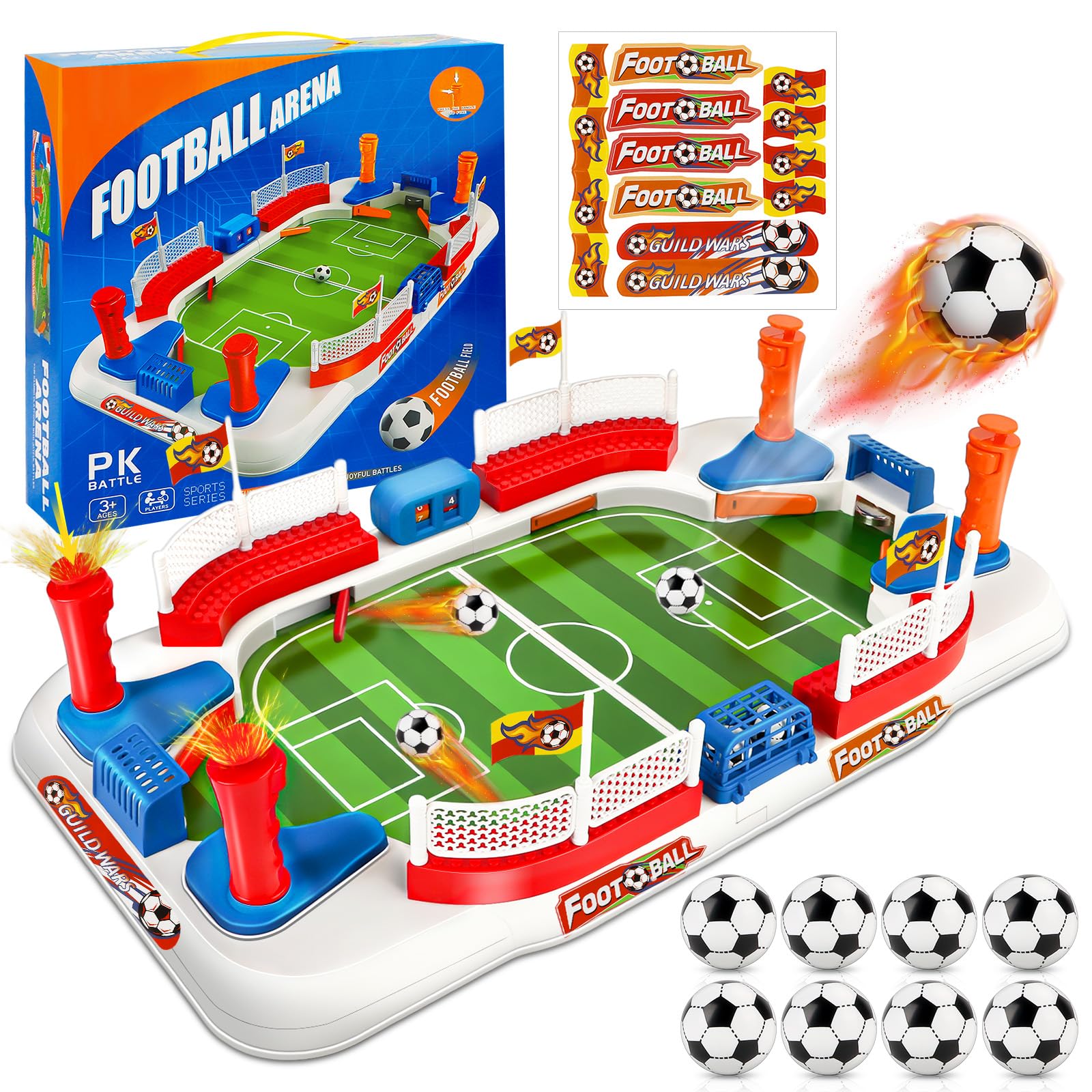 - Giocattolo Portatile per Competizioni: questo calcio balilla portatile è facile da trasportare ovunque e ideale come giocattolo per feste, regalo di compleanno, regalo di Natale, ecc. È divertente organizzare competizioni, fare amicizia e allenare la reattività e la coordinazione occhio-mano. Il set include anche adesivi con cui decorare il campo da gioco per aumentare l'atmosfera competitiva!