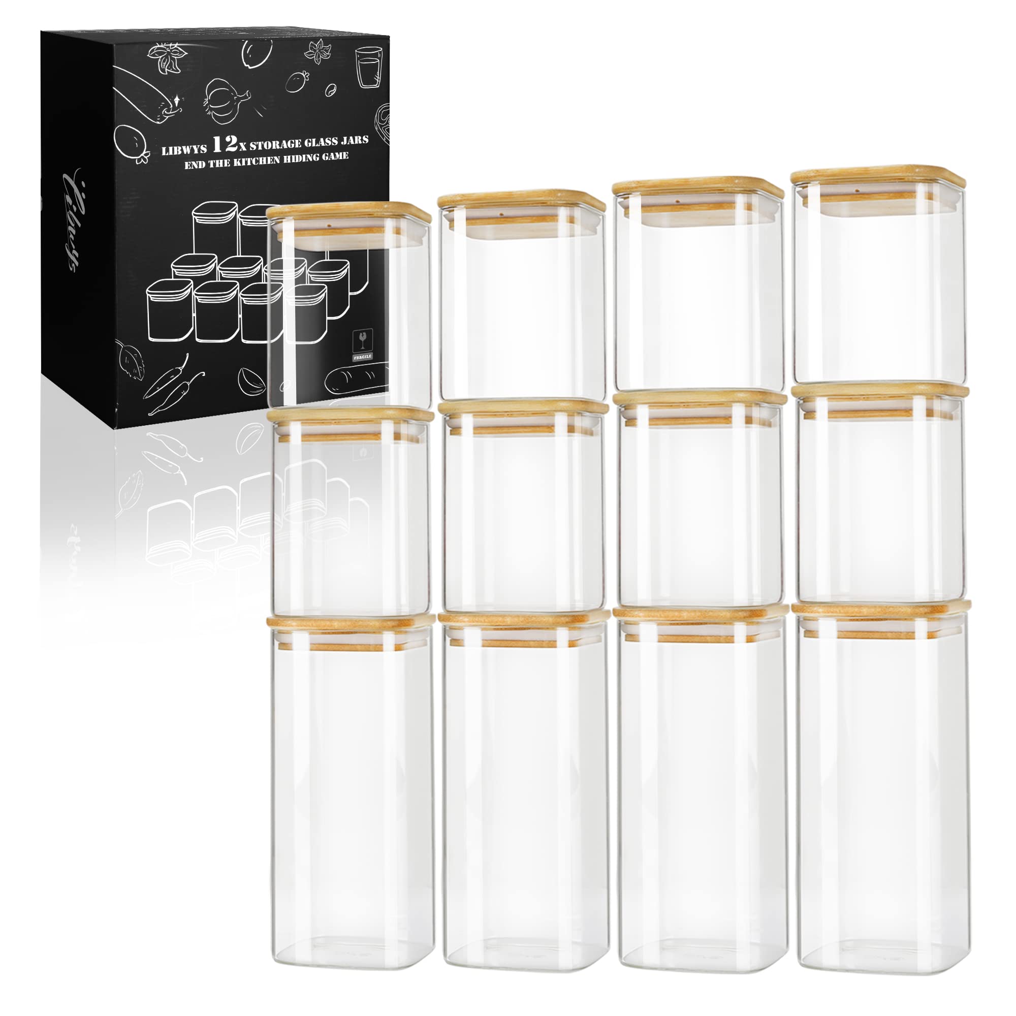 - Il set da 12 pezzi include contenitori da 1000 ml e 600 ml, realizzati in vetro borosilicato resistente al calore e lavabili in lavastoviglie, offrendo una soluzione pratica e sostenibile per organizzare armadi e cassetti.