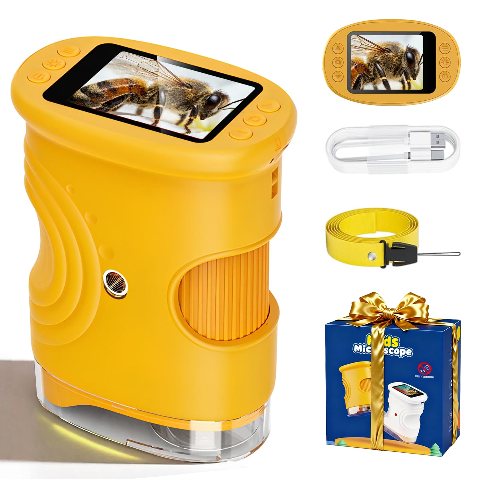 - 💐Portatile e Facile da Usare: Questo microscopio portatile è stato sviluppato appositamente per i bambini – è leggero e trasportabile, con un peso di soli 200g. L’uso è completamente semplice: Nessuna app aggiuntiva o impostazioni complesse necessarie. Basta premere il pulsante di accensione/spegnimento, regolare la messafoco – e la viaggio di scoperta può iniziare subito. Nel pacchetto sono inclusi un cavo di ricarica USB, un collare e un manuale d’uso.