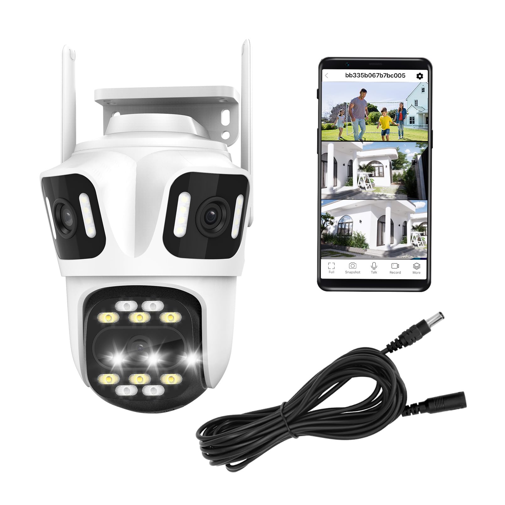 - 【Rilevamento movimento AI e tracciamento automatico】 Dotata di intelligenza artificiale avanzata, questa telecamera WiFi per esterni a tre lenti rileva i movimenti umani con precisione e riduce al minimo i falsi allarmi. L’obiettivo panoramico/tilt da 4MP segue automaticamente i movimenti, rendendola una potente telecamera di sicurezza per esterni che non perde mai un momento.