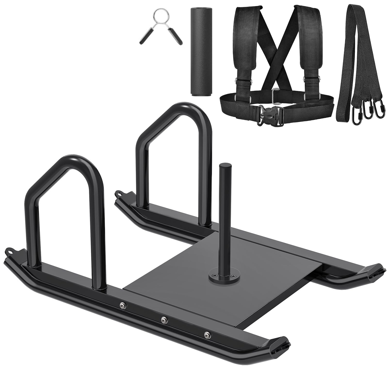 - Questa slitta per pesi è progettata per l'allenamento della forza, permettendo diverse modalità di spinta, trazione e trascinamento per sviluppare velocità e potenza muscolare. È compatibile con piastre di peso da 1 pollice e 2 pollici.