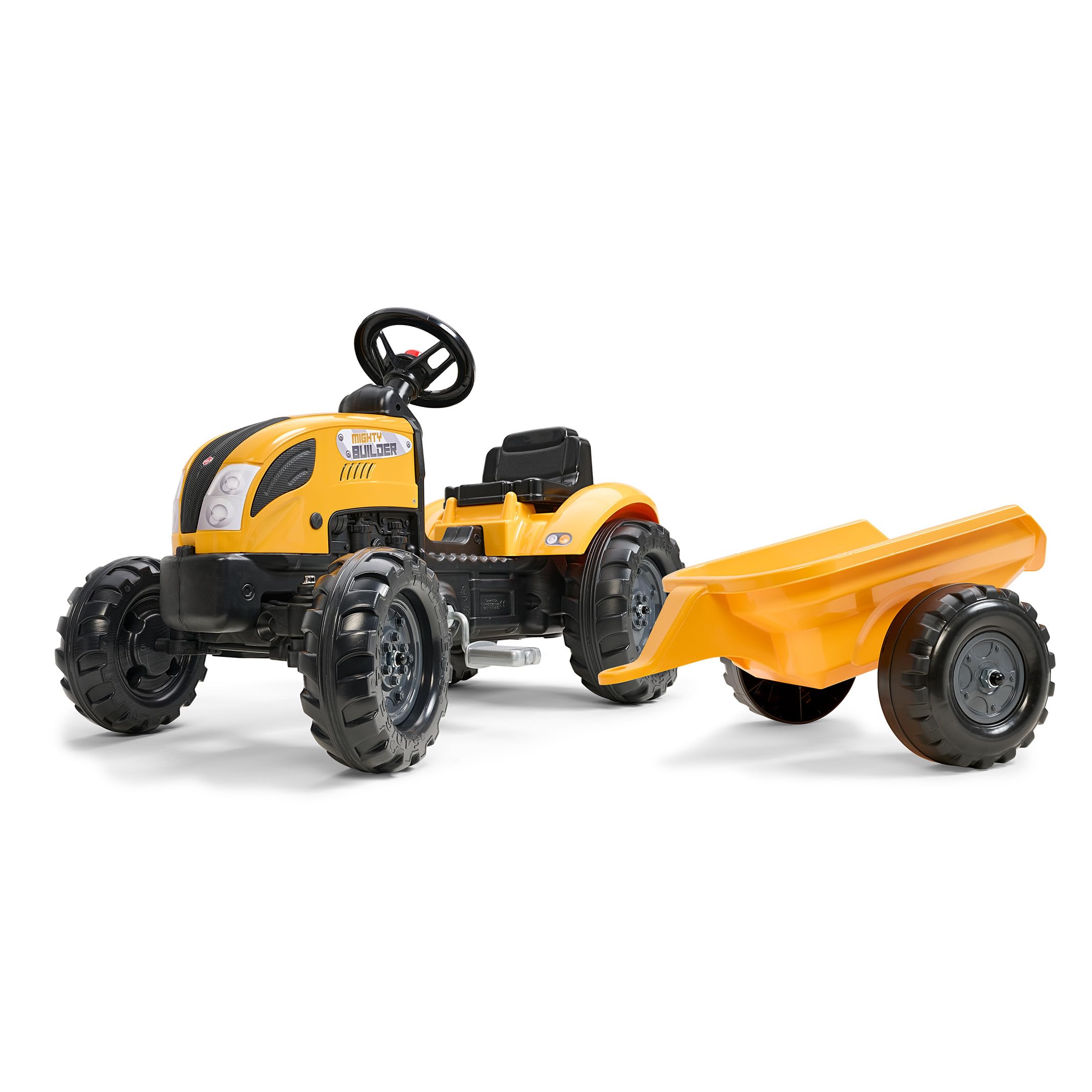 Falk Trattore a Pedali Mighty Builder Giallo con Rimorchio