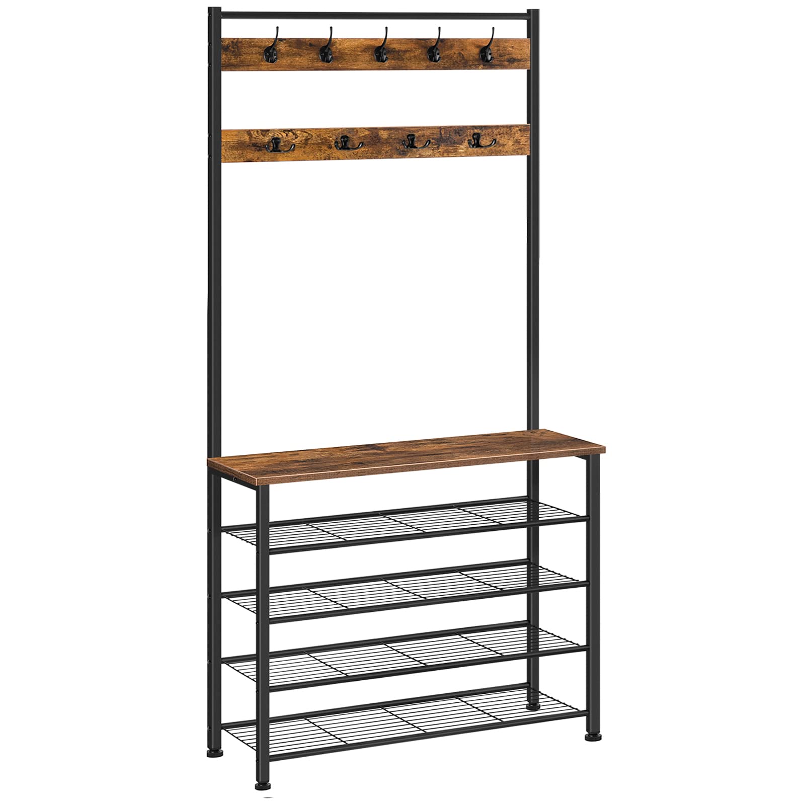 - Versatile: L'appendiabiti ha 9 ganci nella parte superiore per appendere giacche, cappotti, sciarpe, cinture, borse, ecc. Ogni gancio ha una portata fino a 5 kg; 5 ripiani al sotto come scarpiera per riporre scarpe o le scatole di organizzazione, anche può riporre stivali lunghi