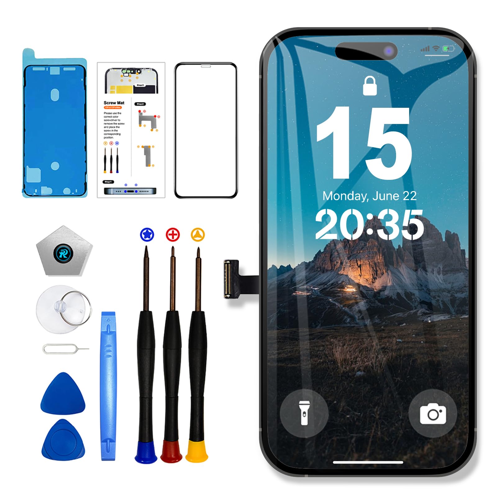 - Facile da installare: questo kit di ricambio touch screen contiene un kit di riparazione per iPhone 15. Puoi anche cercare "Sostituisci lo schermo di iPhone 15" su YouTube per istruzioni video. È facile installare il nuovo schermo anche se è la prima volta.