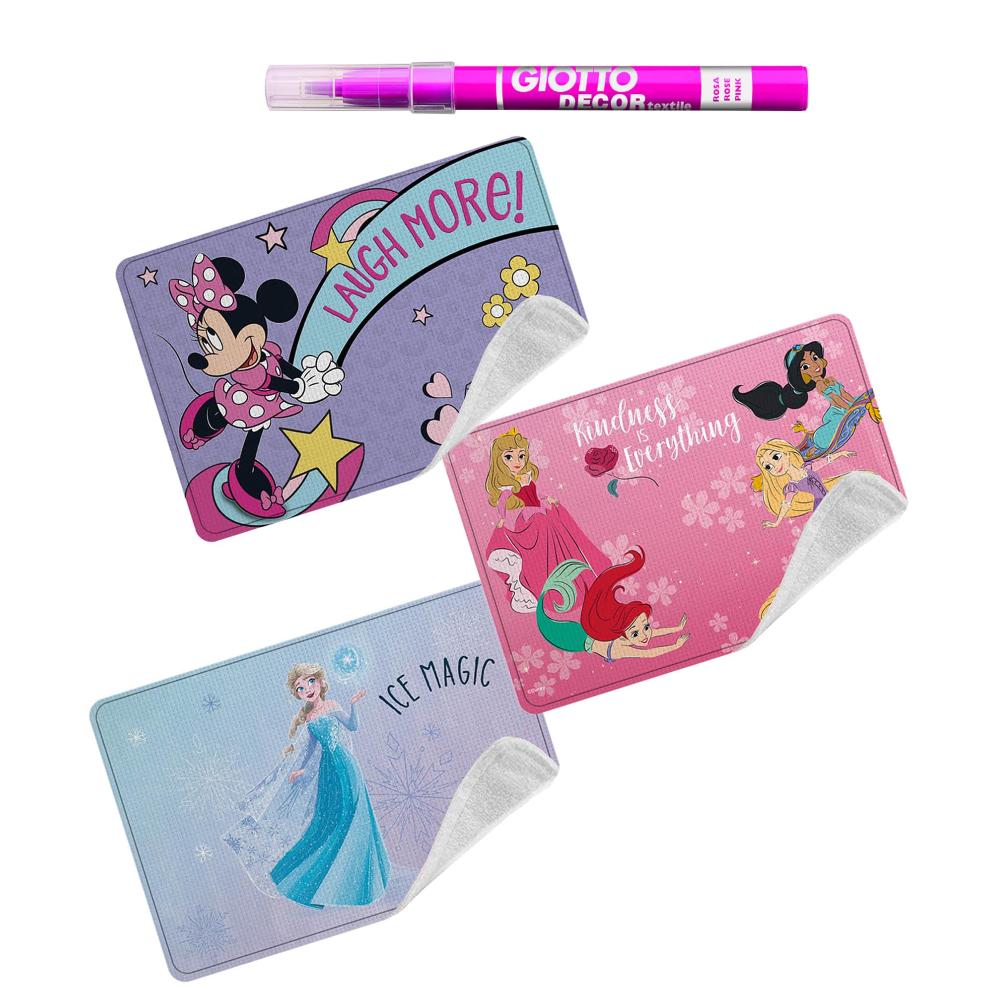 - Set di tre tovagliette in tessuto per bambini, ideali come protettori di scrivania.