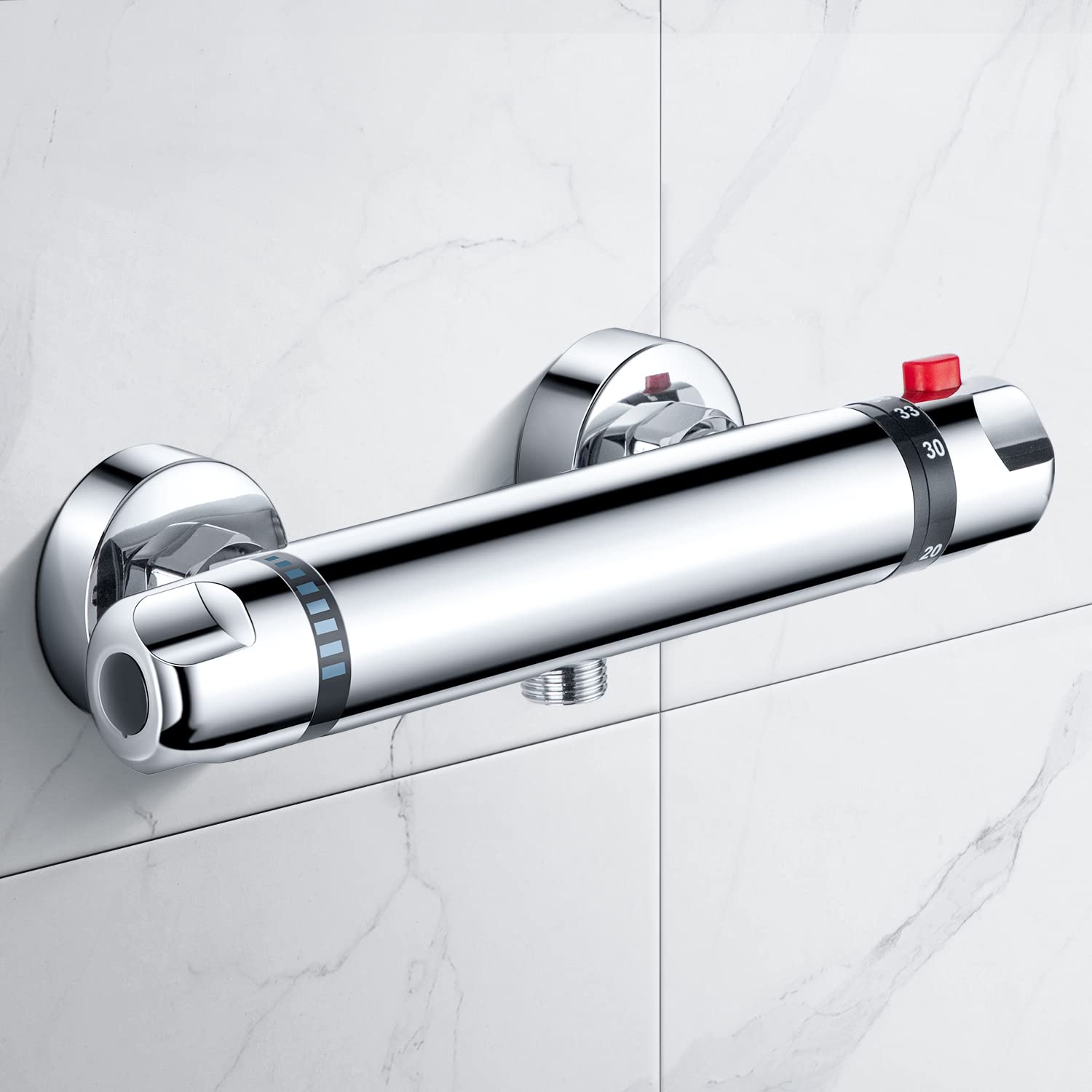 - 🐋 Controllo Della Temperatura : La gamma di temperatura di uscita del miscelatore termostatico doccia va da 20°C a 48°C. Termometro doccia contrassegnata da 1 temperature precise sia 38°C . Miscelatore termostatico per doccia assicura la stabilità della temperatura. Che sia inverno o estate, si può godere di un'esperienza di doccia confortevole