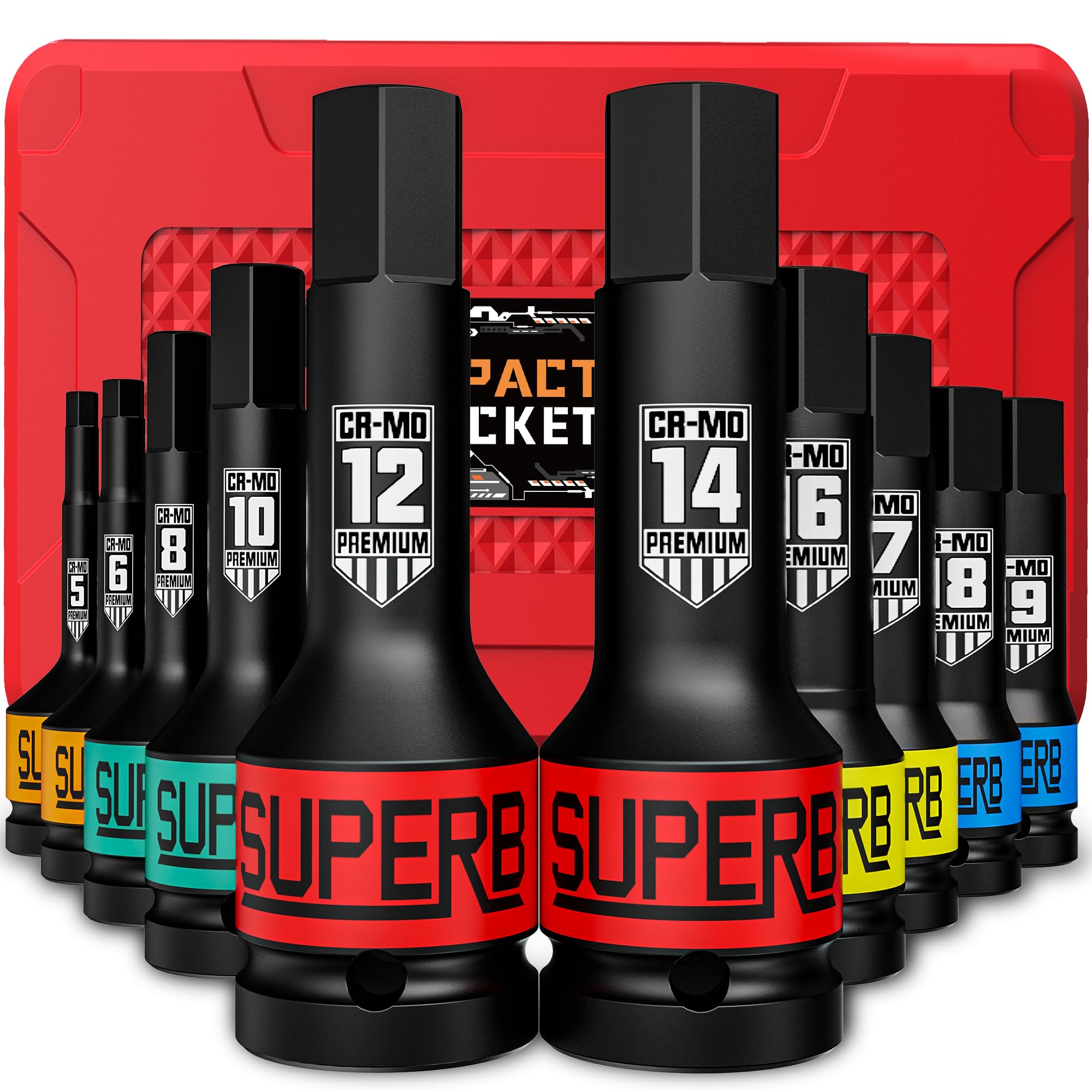 - Le bussole esagonali sono realizzate in acciaio legato CRMO trattato termicamente, le bussole esagonali offrono una durezza, una resistenza all'usura e una durata agli urti superiori, riducendo al minimo le rotture e le spellature, il perfetto automobilistico pneumatico ed elettrico set di strumenti di riparazione