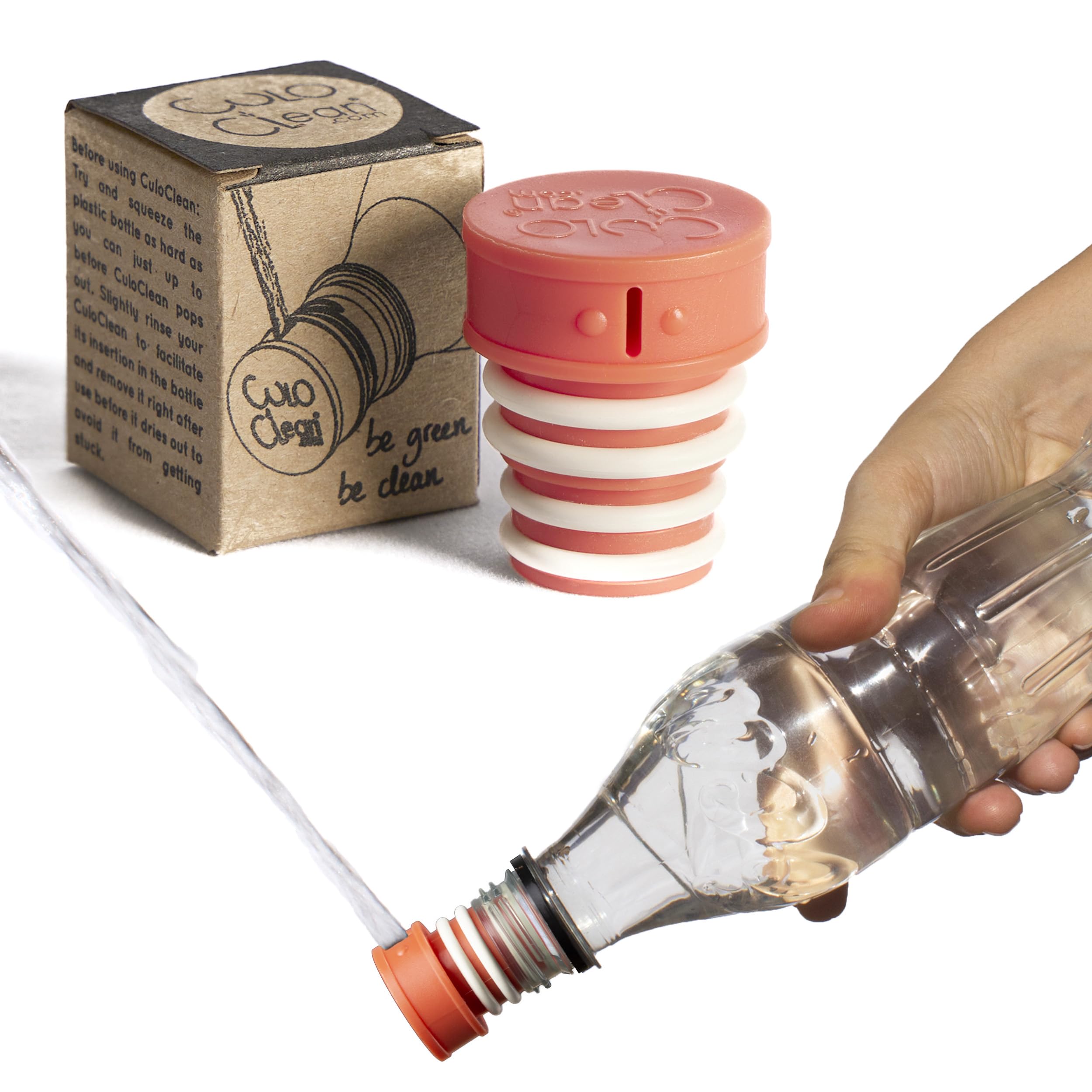 - CuloClean è un bidet portatile discreto ed efficace, progettato per essere installato su qualsiasi bottiglia di plastica, facile da trasportare e utilizzabile in bagno o ovunque sia necessario.
