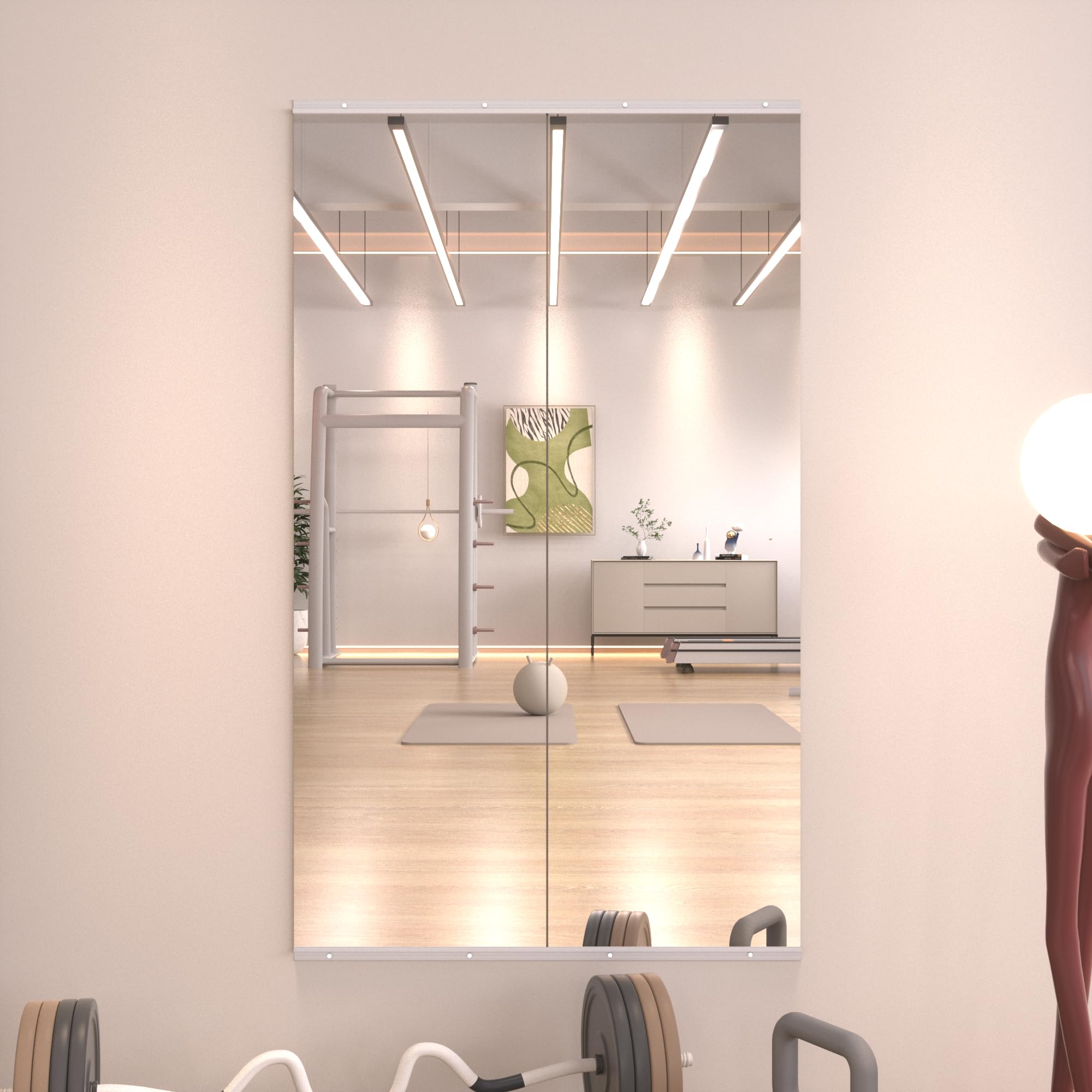 - 🛡【Design Di Sicurezza Infrangibile】questo specchio per palestra domestica è dotato di vetro di sicurezza temperato da 4 mm che resiste agli urti e si rompe in modo sicuro grazie ai bordi arrotondati. Antiurto e antideflagrante per un utilizzo senza problemi in casa, studio o bagno.