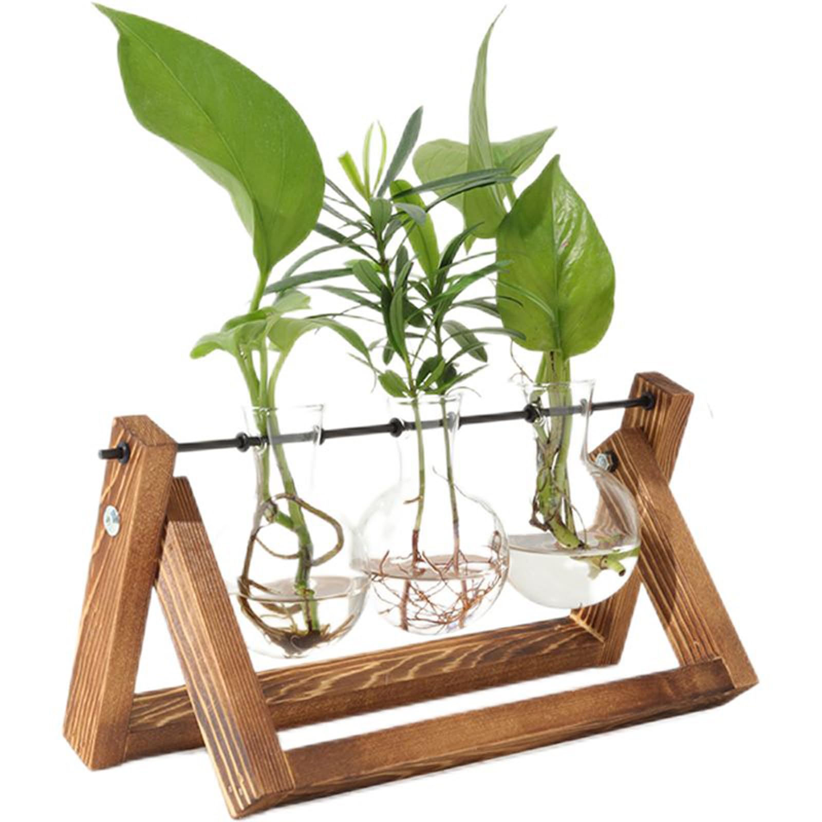 - Il pacchetto comprende un supporto in legno e tre vasi in vetro a bulbo, un set elegante e funzionale che contribuisce a purificare e rinfrescare l'aria sia in ambienti interni che esterni.
