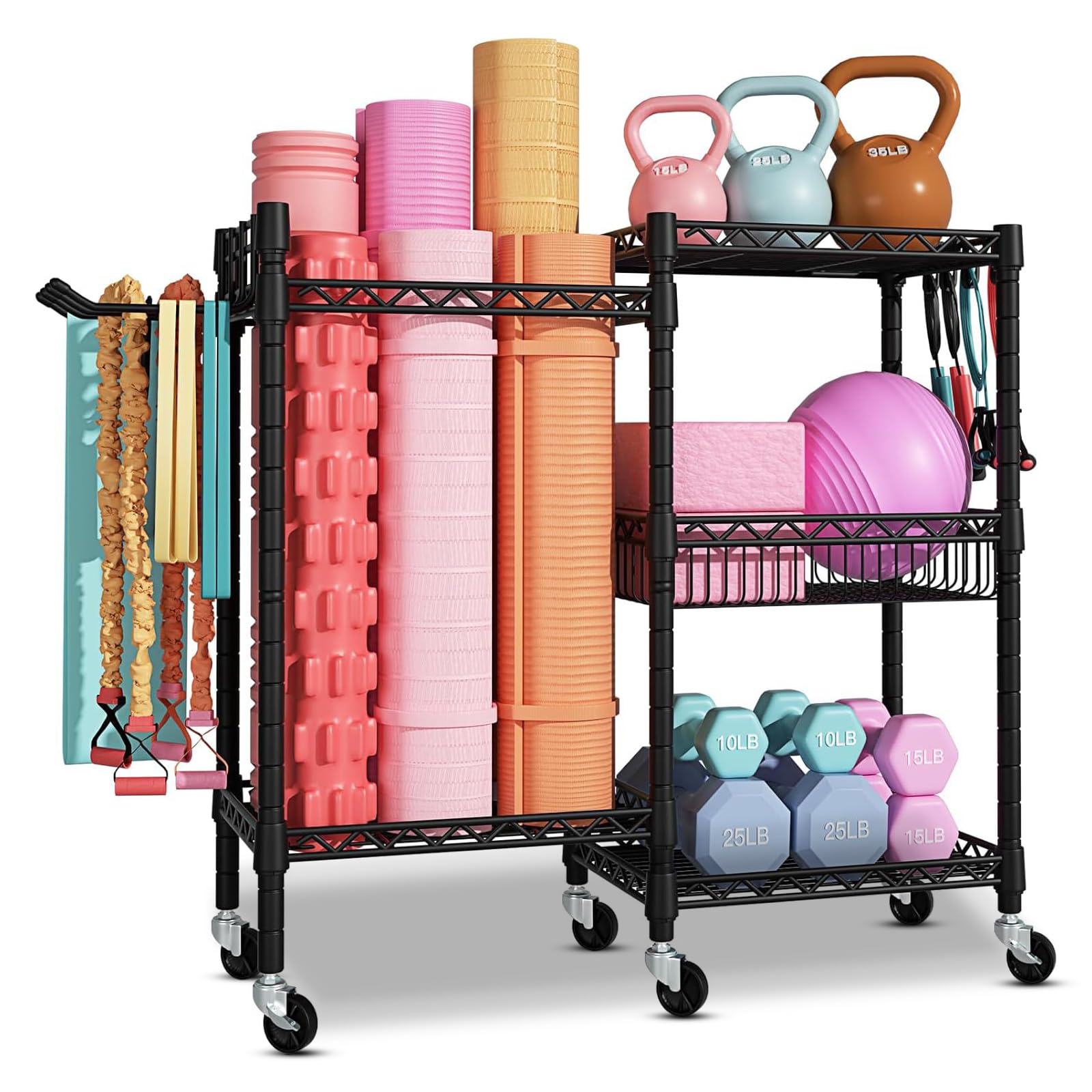 - Grande capacità a 3 livelli:Scaffale multiuso progettato per organizzare tutto il tuo equipaggiamento da allenamento: manubri, kettlebell, tappetini yoga, foam roller e bande di resistenza.Offre ampio spazio di stoccaggio mantenendo l’area fitness pulita e ordinata.