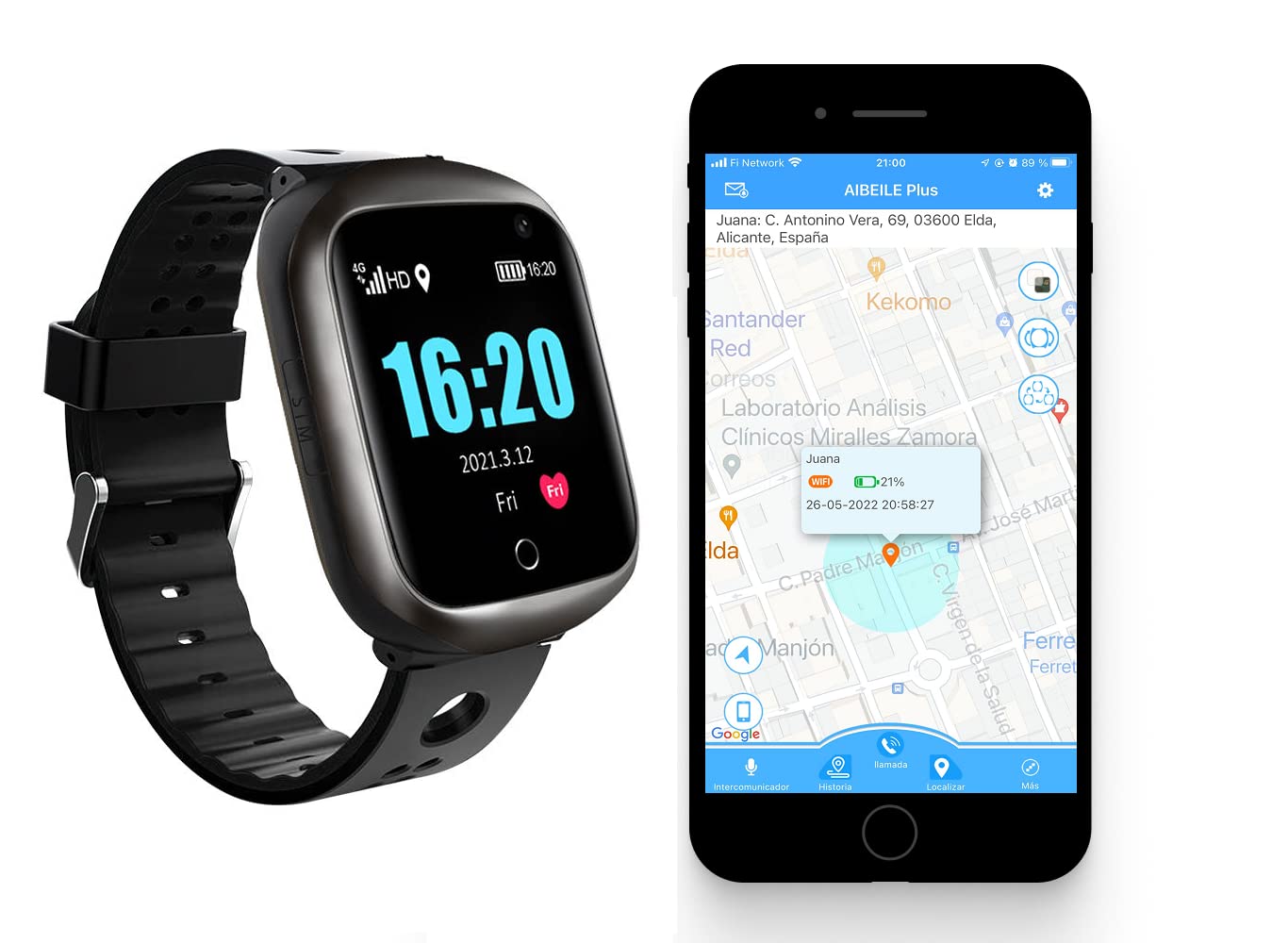 - Il localizzatore GPS, LBS e Wi-Fi integrato permette di monitorare la posizione del tuo caro in tempo reale e senza limiti di distanza, visualizzandola facilmente sulla mappa tramite l'applicazione dedicata.